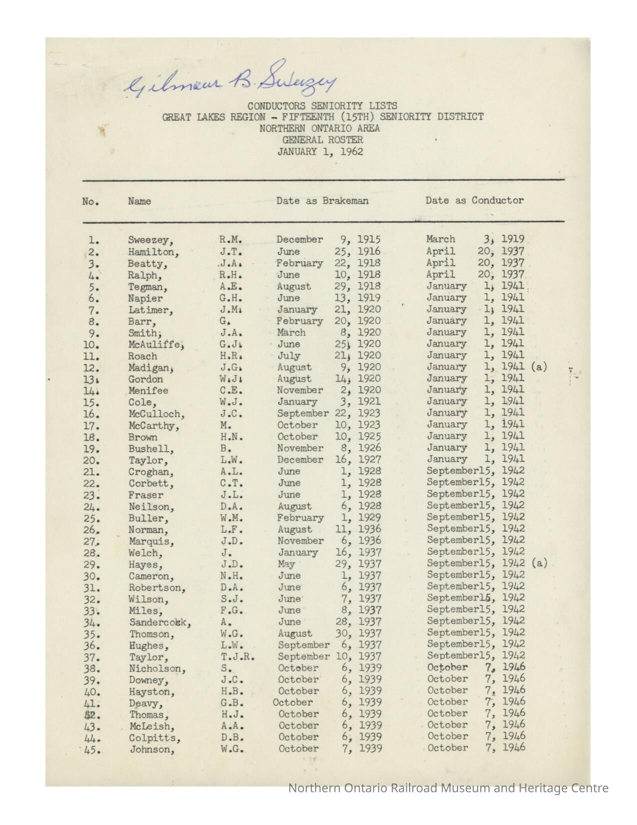 Document, Seniority List, Canadian National Railway, Northern Ontario Division.Collection