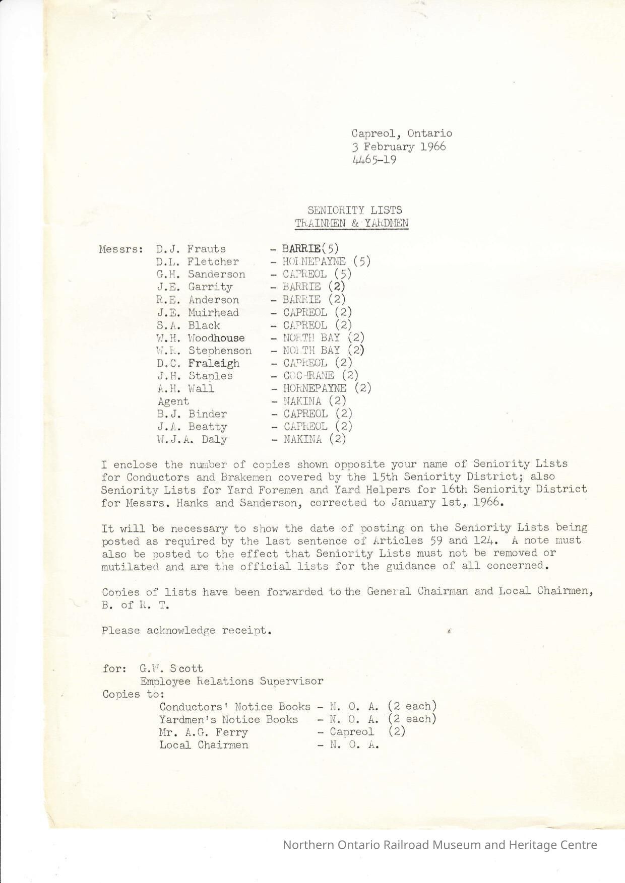 Document, Seniority List, Canadian National Railway, Northern Ontario Division.Collection