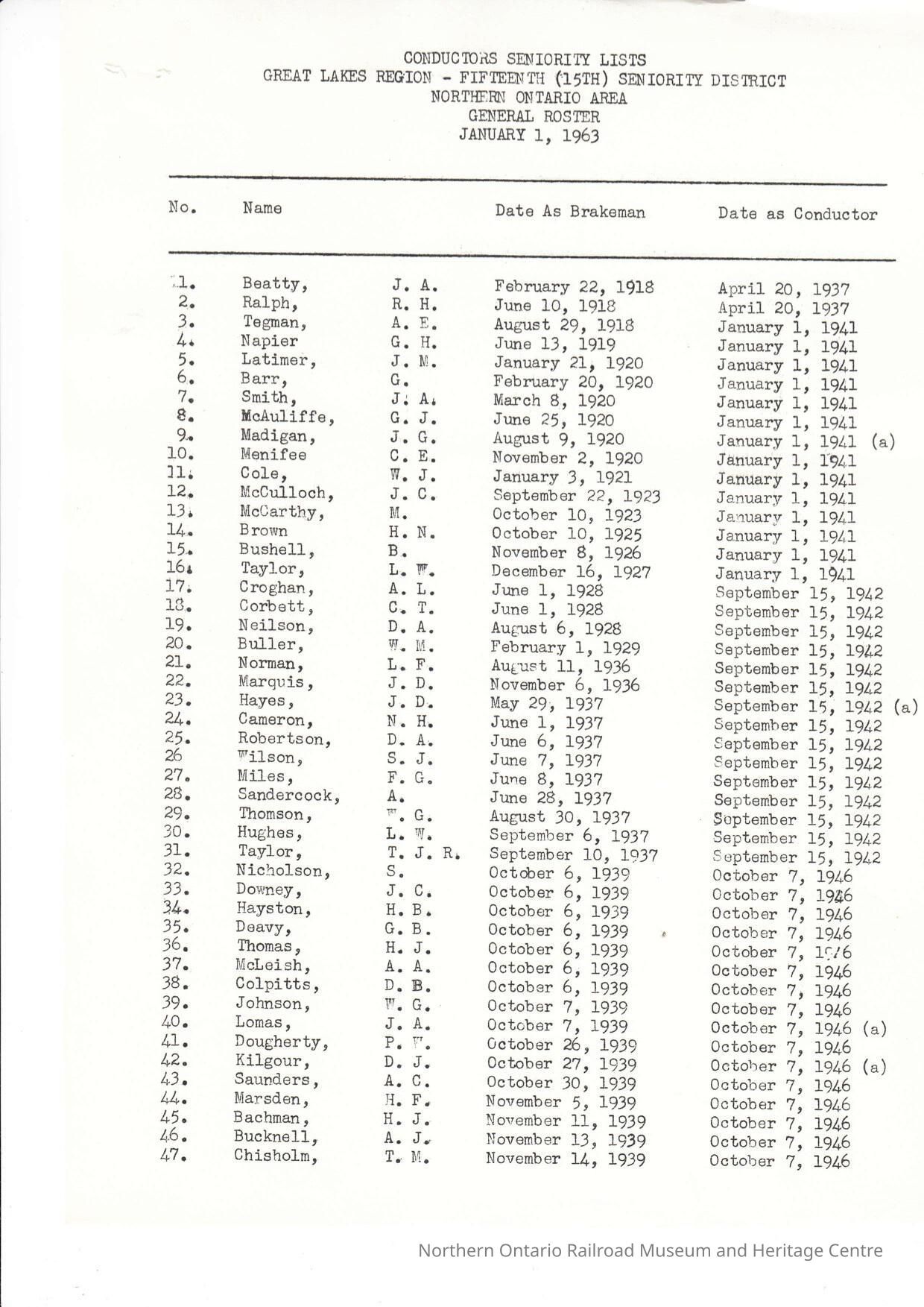 Document, Seniority List, Canadian National Railway, Northern Ontario Division.Collection