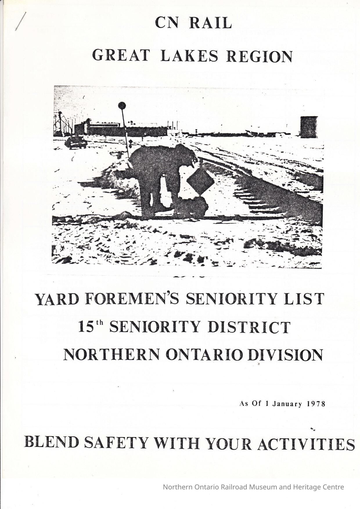 Document, Seniority List, Canadian National Railway, Northern Ontario Division.Collection