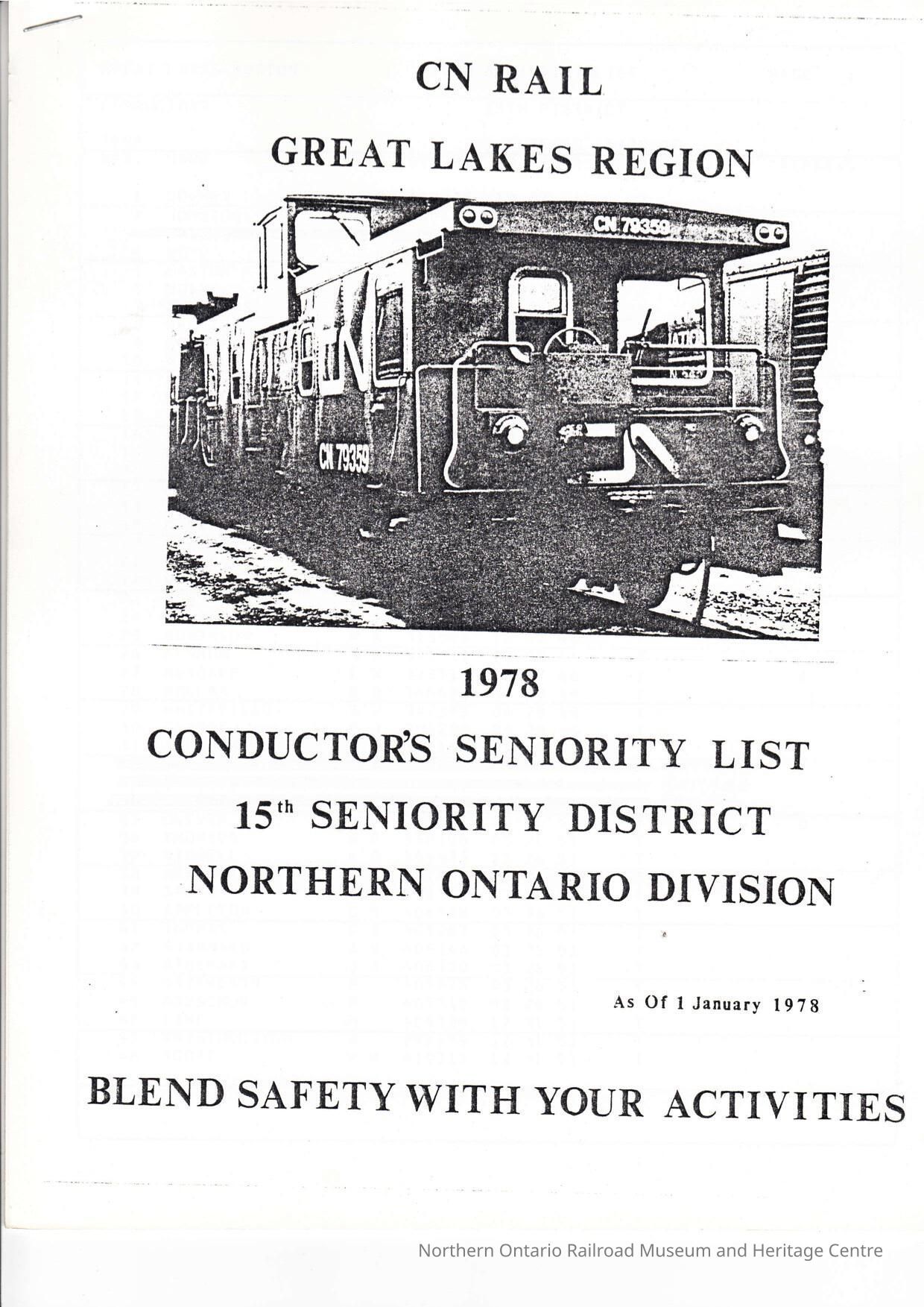 Document, Seniority List, Canadian National Railway, Northern Ontario Division.Collection