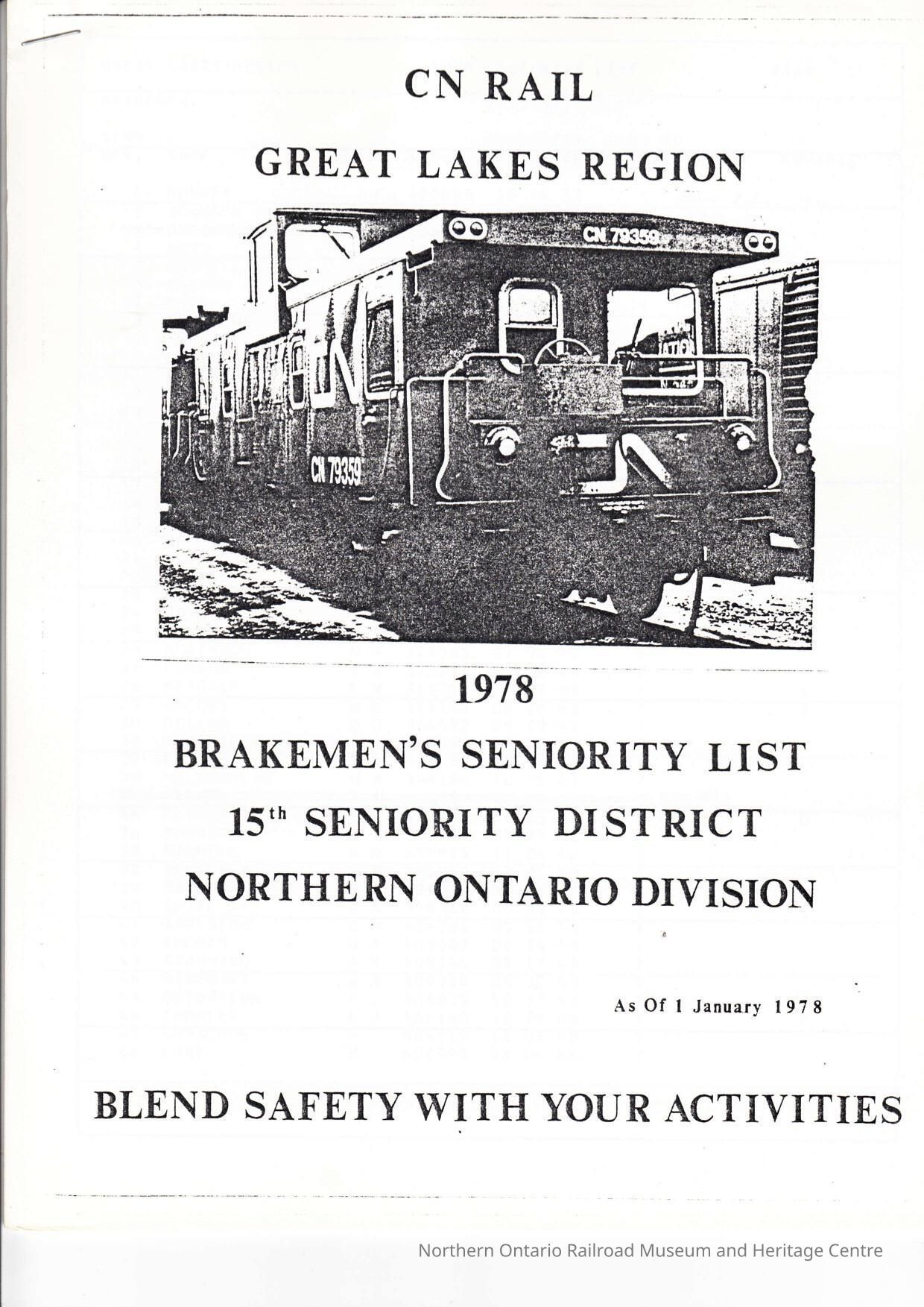 Document, Seniority List, Canadian National Railway, Northern Ontario Division.Collection