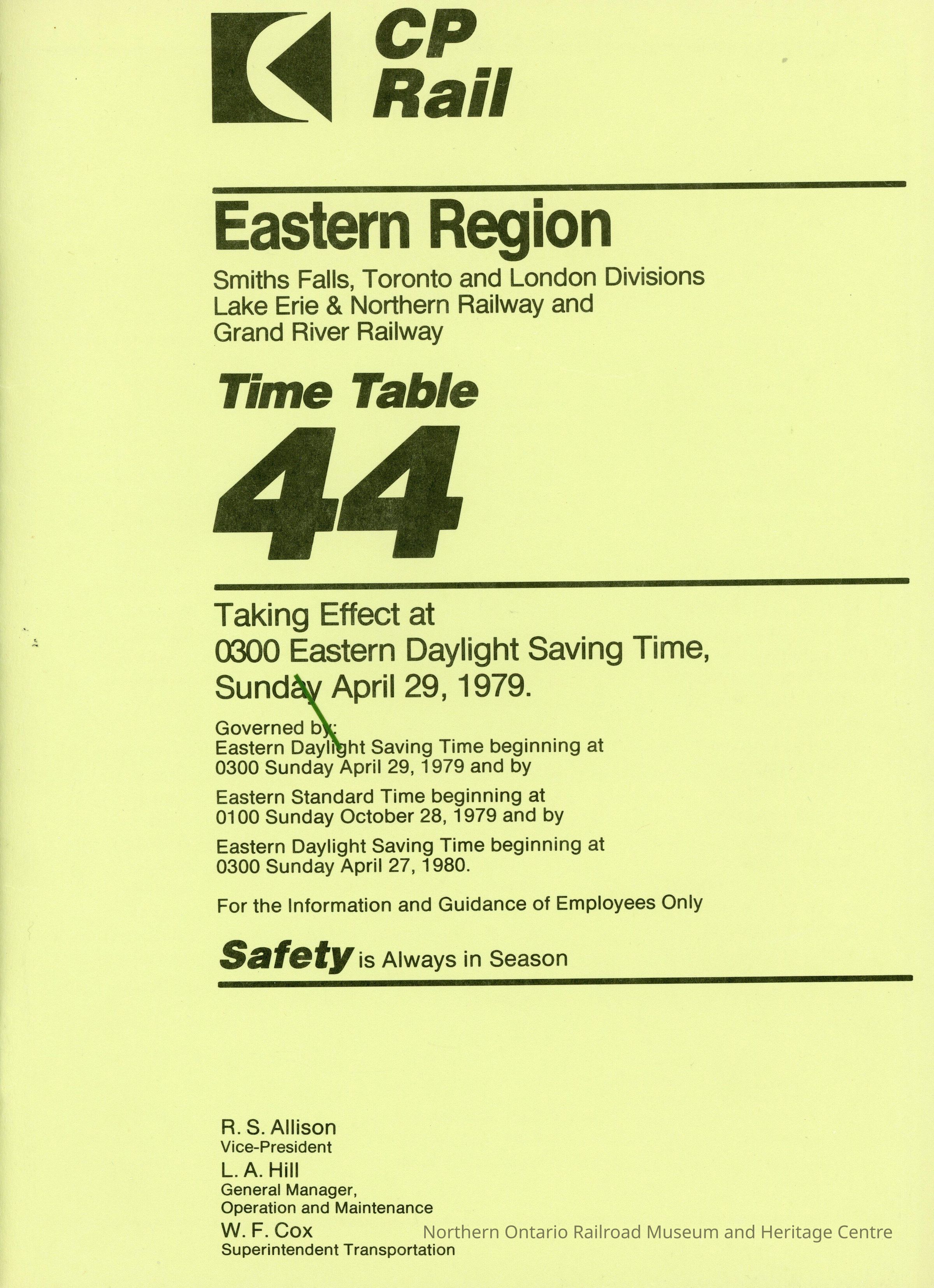 Employee Timetable, CPR, Eastern Region, Timetable 44, April 29th 1979.Collection