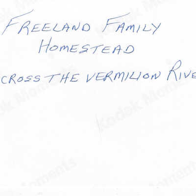 Black and White Photograph showing the Freedland Family homestead on the Old Diversion, across the Vermillion RiverPhotograph Details