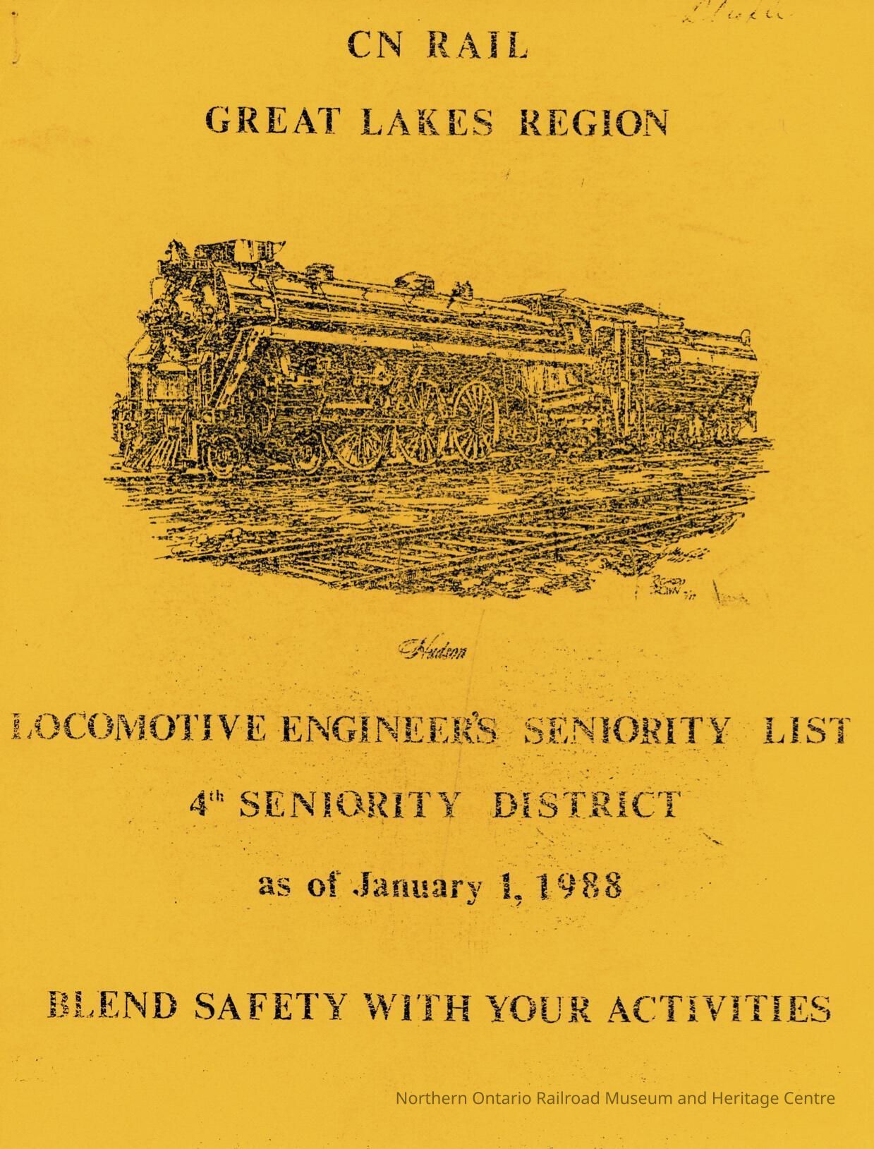 Document, CN Great Lakes Region Locomotive Engineers Seniority List 4th Seniority District January 1988.Collection
