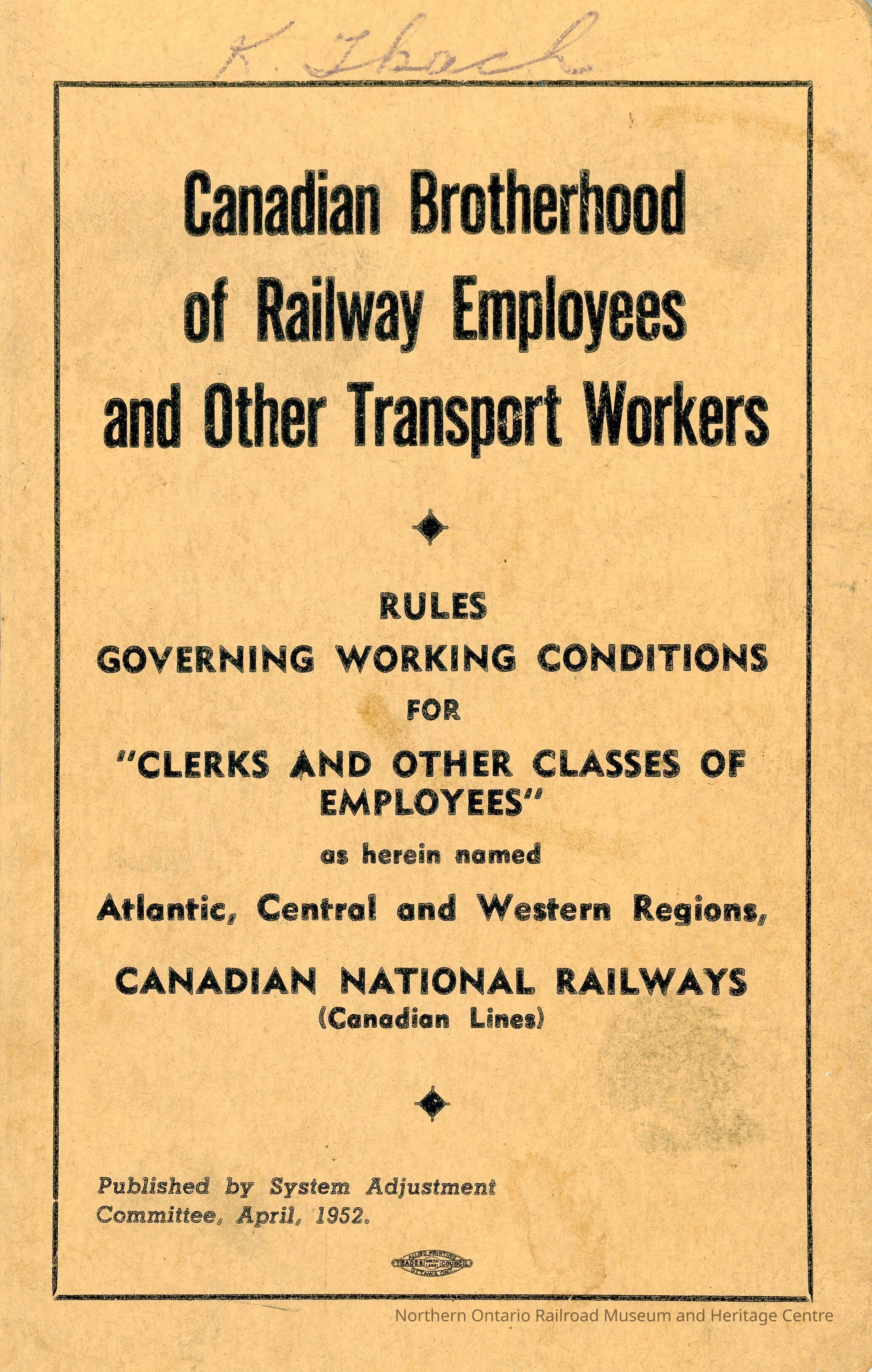 Employee Material, Canadian Brotherhood of Railway Employees and Other Transport Workers, Rules Governing Working Conditions for Clerks and Other Classes of Employees.Collection