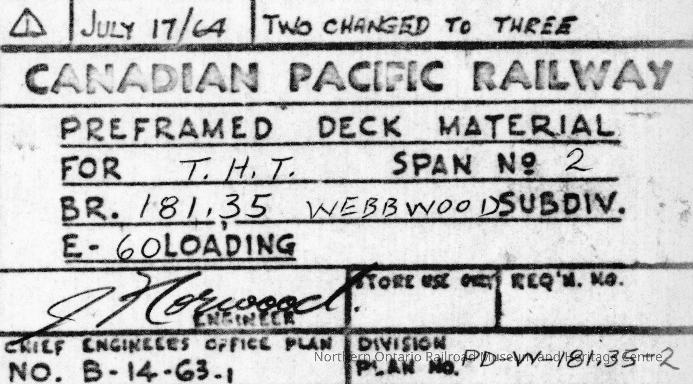 Document, Plan, Canadian Pacific Railway, Predramed Deck Material for T.H.T. Webbwood Subdivision, Bridge 181.35.Collection