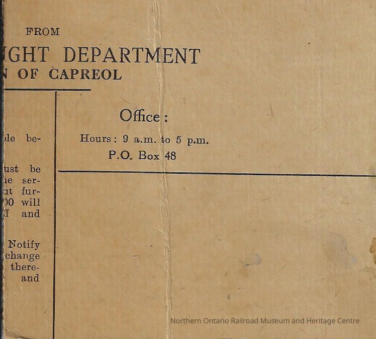 Town of Capreol Electric Lighting Department, Monthly Invoice: Art CavanaughtEntry/Object ID