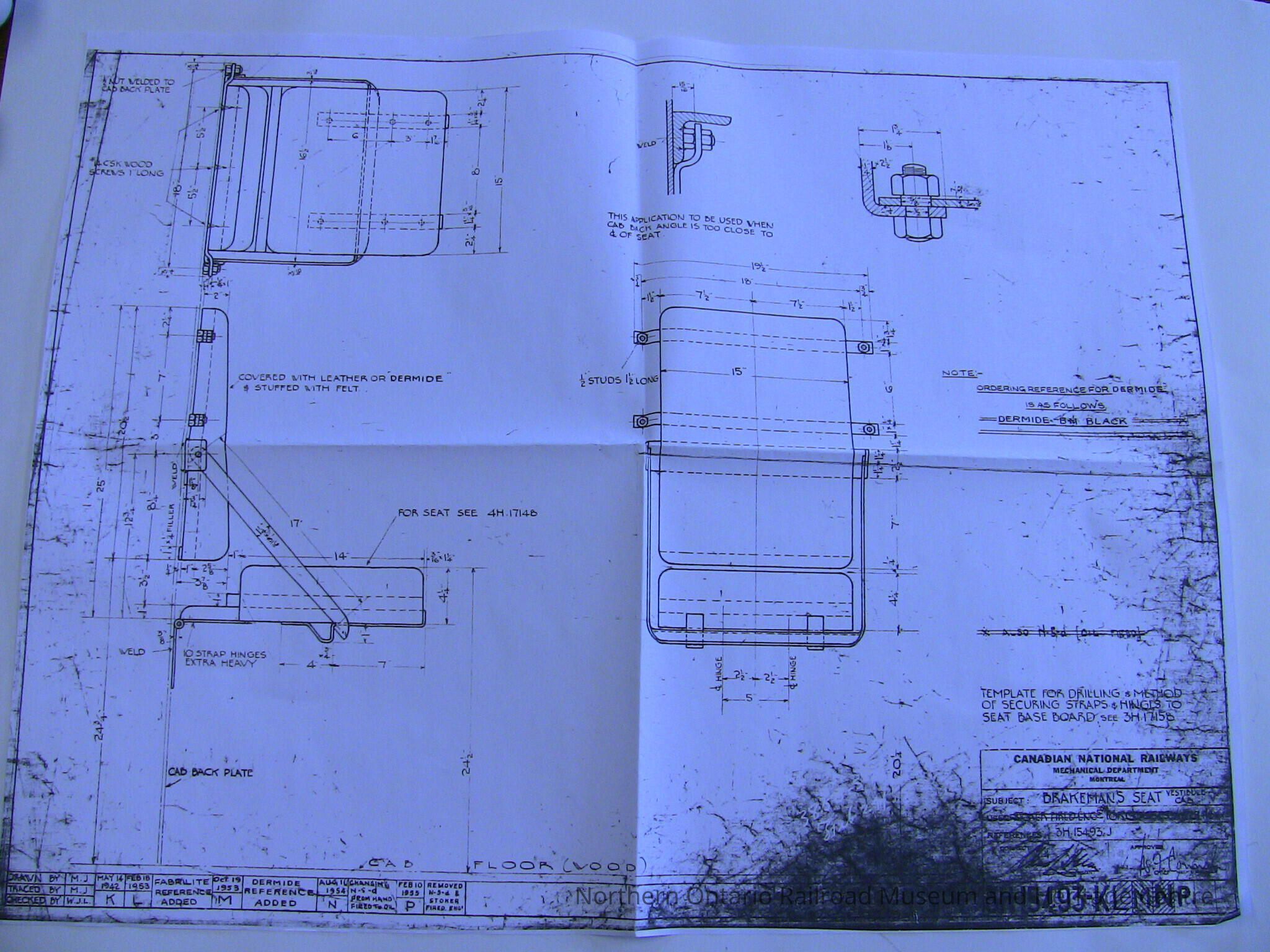 A reproduction of technical drawings drawn at the Canadian National Mechanical Department in Montreal of the Brakeman's Seat in the vestibule cab of engine no. 6077.Collection
