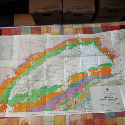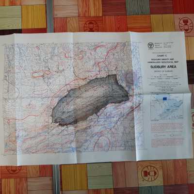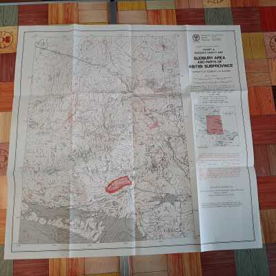 The book discusses the geology of the Sudbury Basin as well as the different types of ores, mineral deposits, and rocks in the basin. It also includes maps and charts (see additional photos)