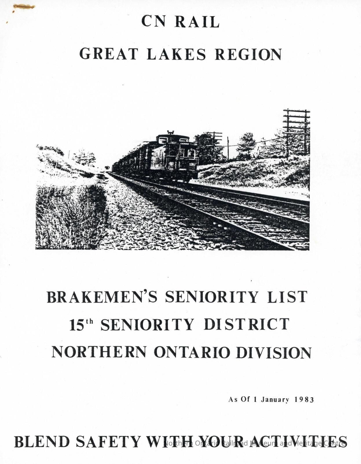 CN Rail, Great Lakes Region, Brakemen's Seniority List, 15th Seniority District, Northern Ontario Division, January 1 1983.Collection