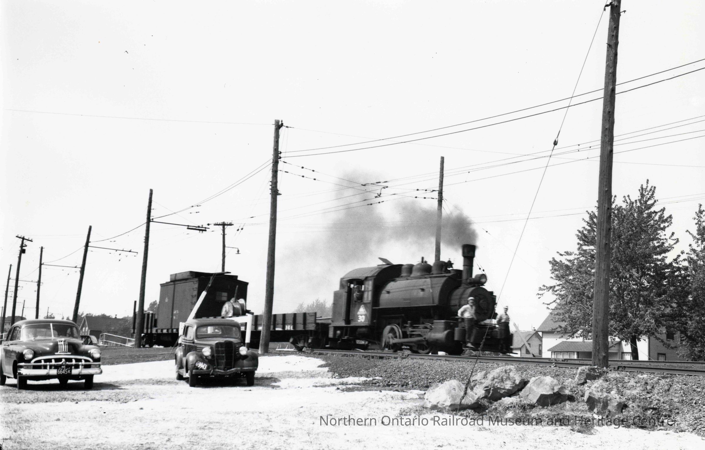 Photograph, INCO Locomotive 30 and Line Car, Lower Yard Limit, from Collection of Dave Shaw.Collection