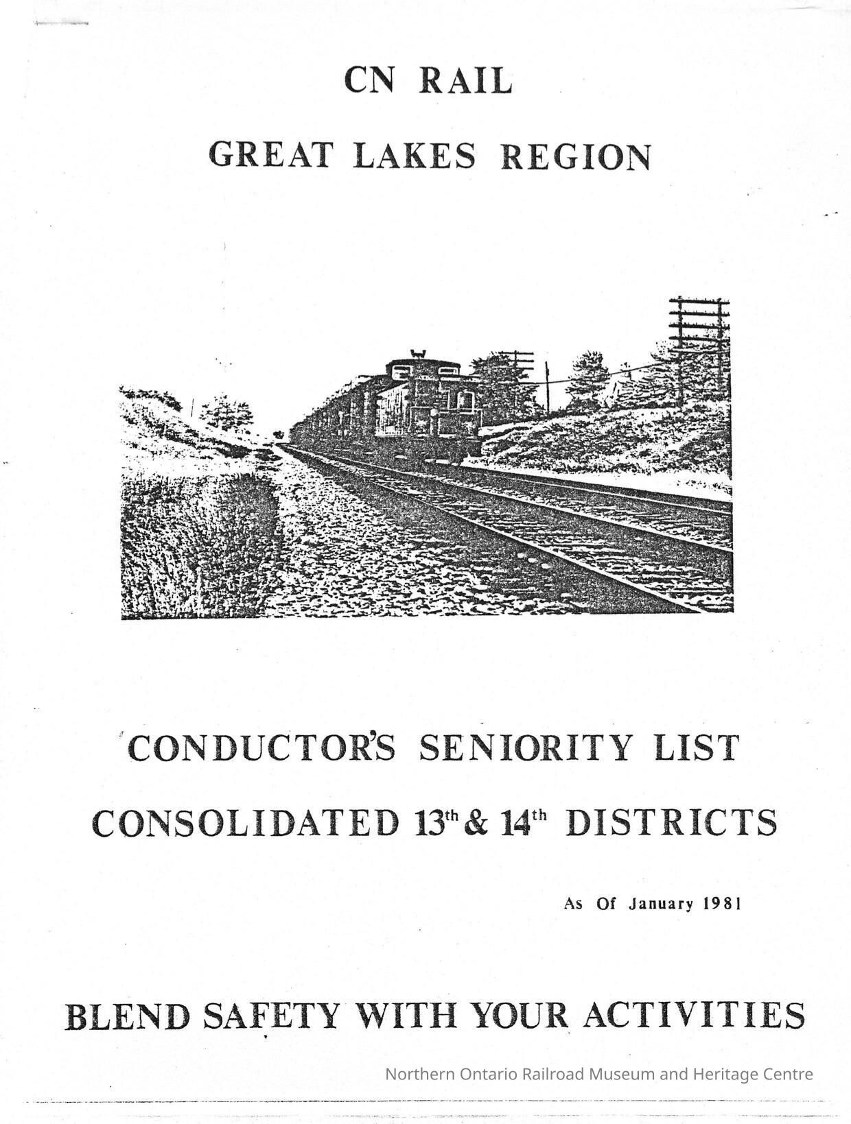 CN Rail, Great Lakes Region, Conductor's Seniority List, Consolidated 13th and 14th Distircts, January 1981.Collection