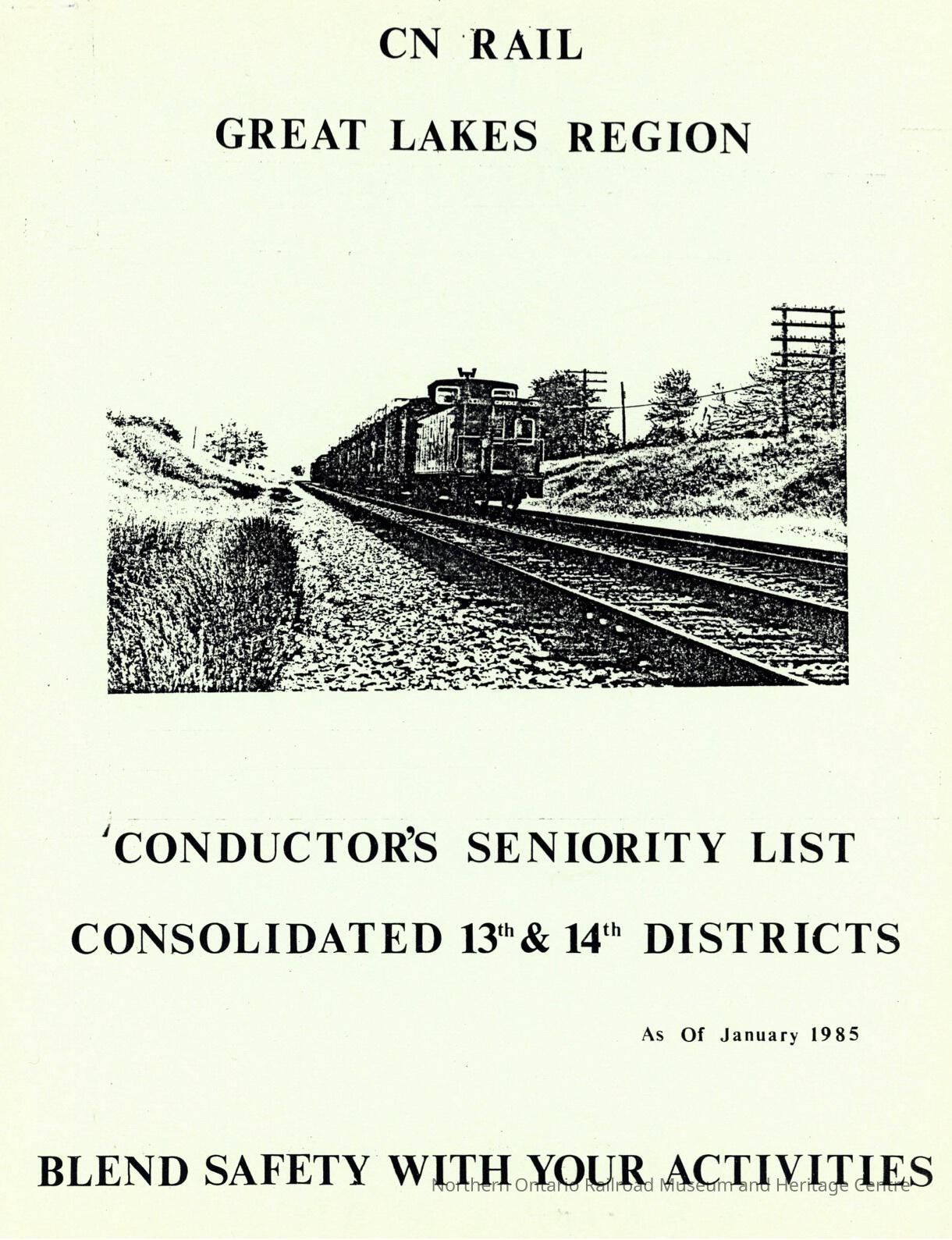 CN Rail, Great Lakes Region, Conductor's Seniority List, Consolidated 13th and 14th Districts as of January 1985.Collection