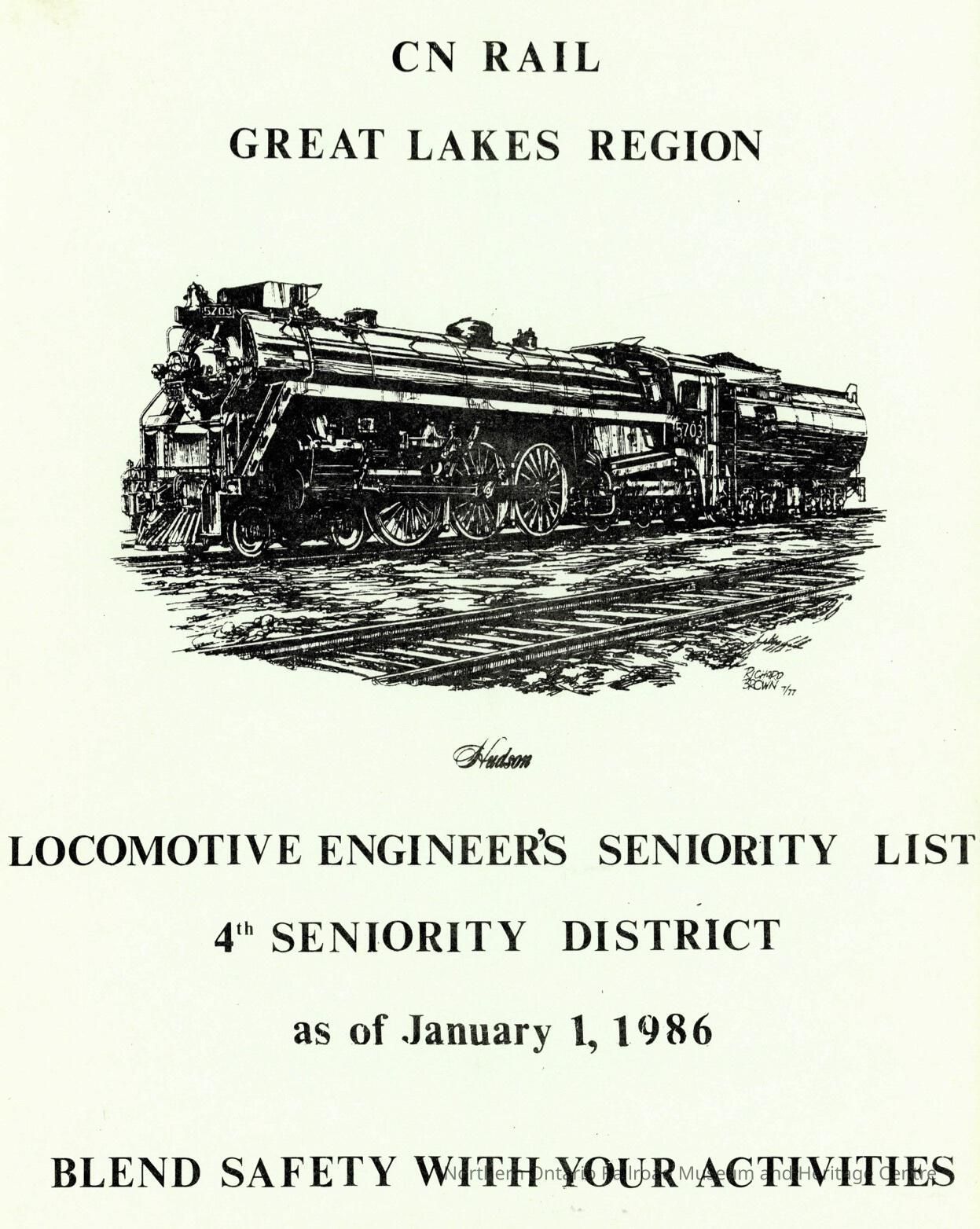CN Rail, Great Lakes Region, Locomotive Engineer's Seniority List, 4th Seniority District, as of January 1 1986.Collection