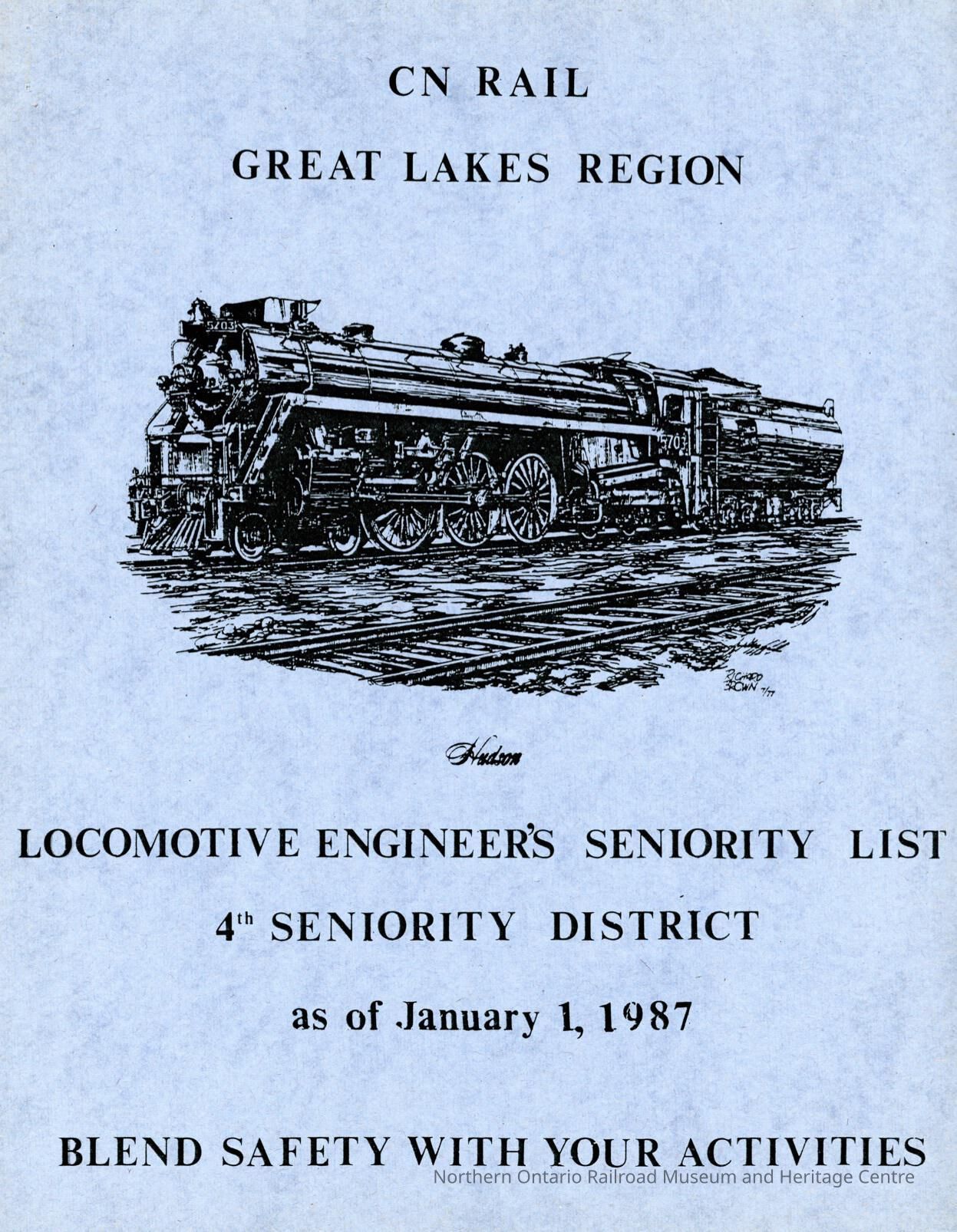 CN Rail, Great Lakes Region, Locomotive Engineer's Seniority List, 4th Seniority District, as of January 1, 1987.Collection