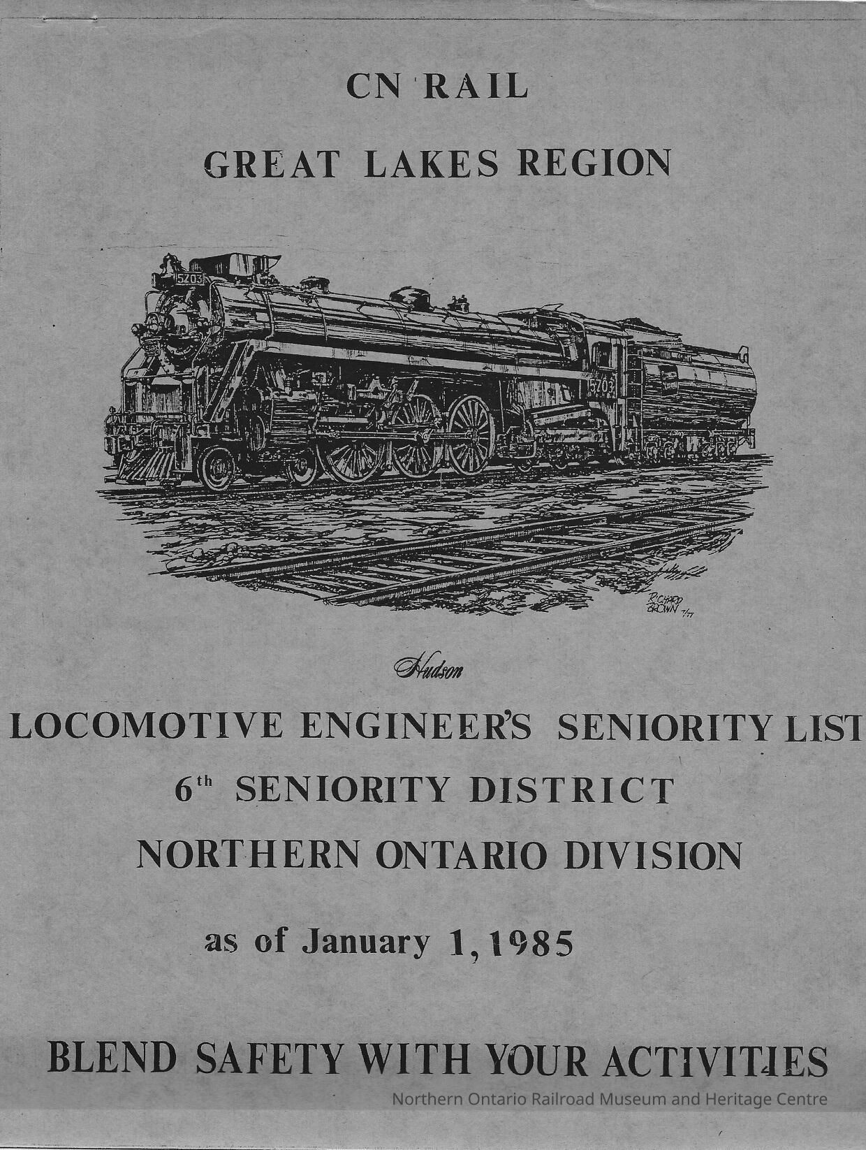 CN Rail, Great Lakes Region, Locomotive Engineer's Seniority List, 6th Seniority District, Northern Ontairo Division, 1 January 1985.Collection