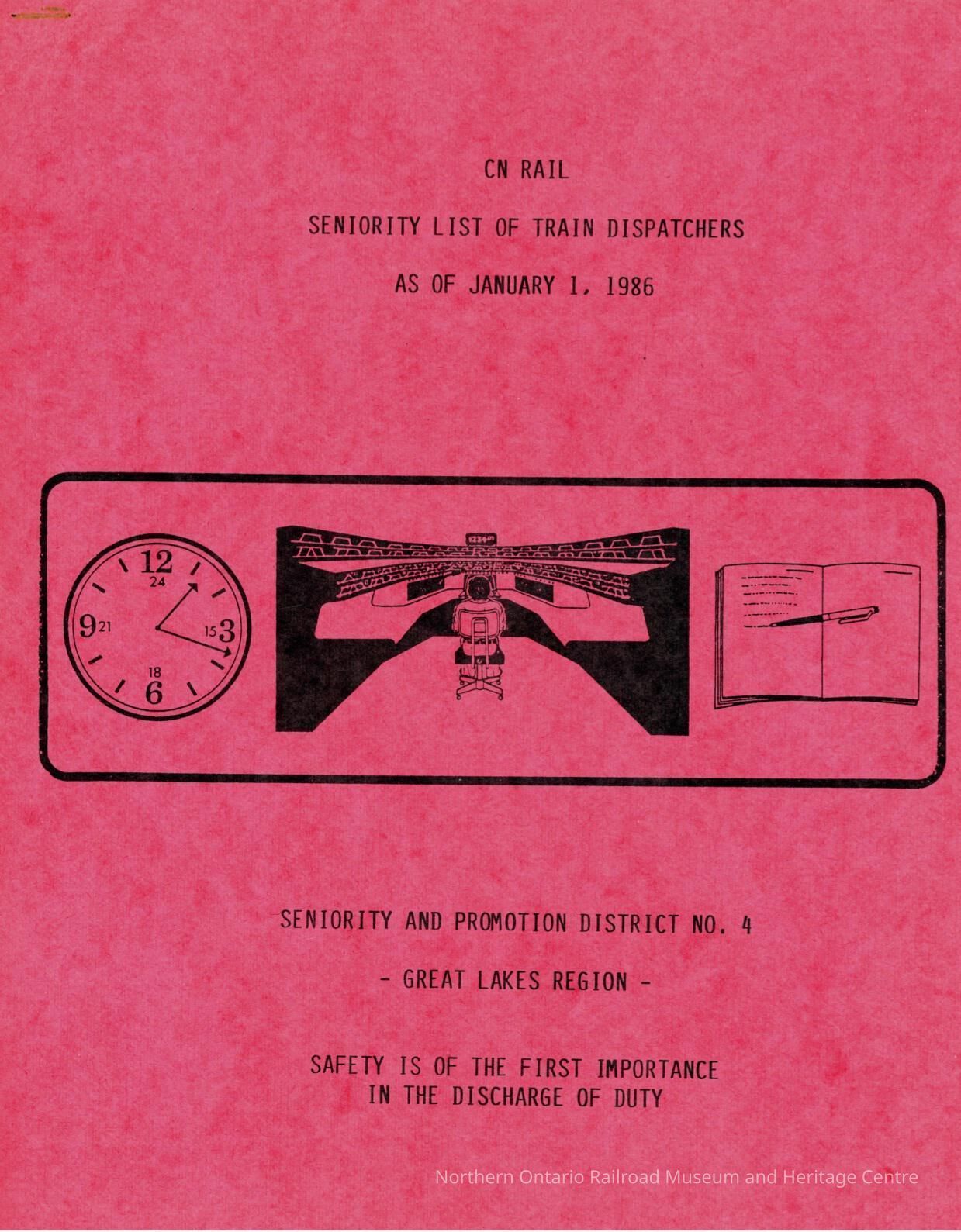 CN Rail, Great Lakes Region, Seniority List of Train Dispatchers, As of January 1 1986, Seniority and Promotion District No 4.Collection
