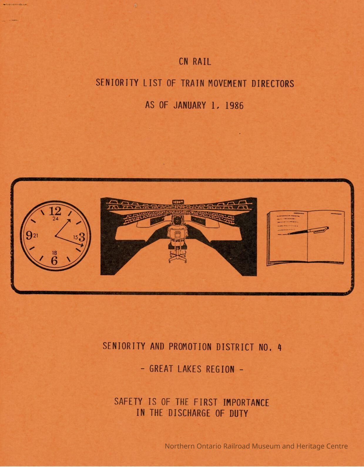 CN Rail, Great Lakes Region, Seniority List of Train Movement Directors, January 1, 1986, Seniority and Promotion District No 4.Collection