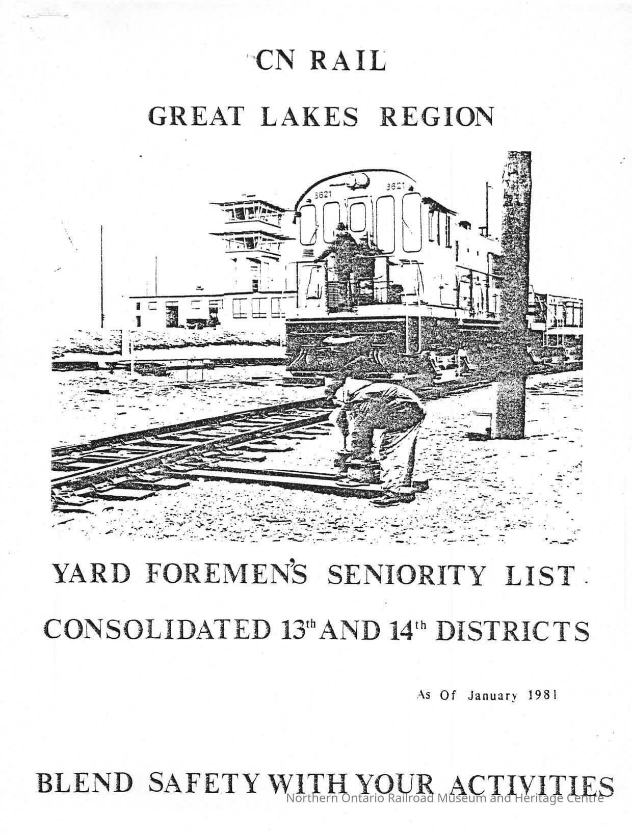 CN Rail, Great Lakes Region, Yard Foremen's Seniority List, Consolidated 13th and 14th Districts, January 1981.Collection