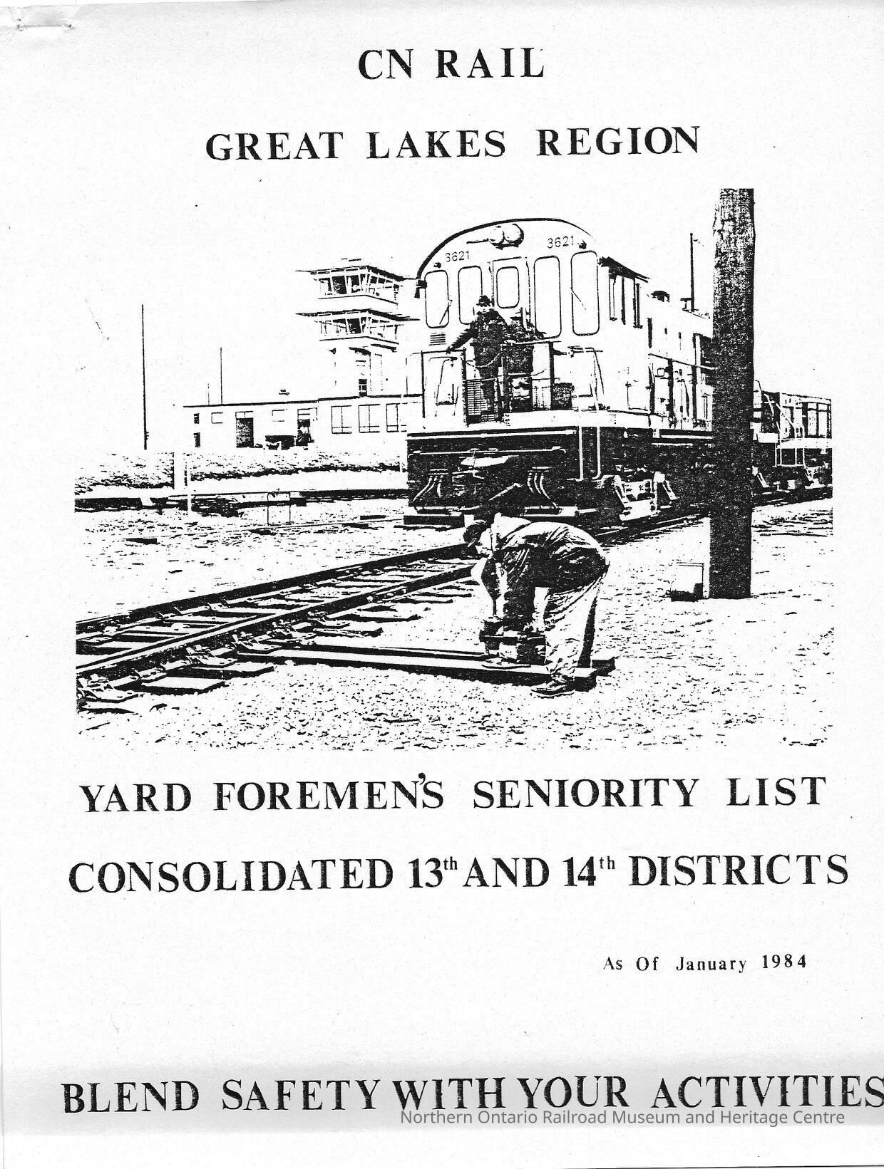 CN Rail, Great Lakes Region, Yard Foremen's Seniority List, Consolidated 13th and 14th Districts, January 1984.Collection