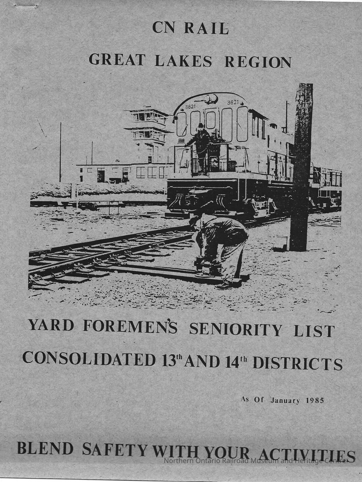 CN Rail, Great Lakes Region, Yard Foremen's Seniority List, Consolidated, 13th and 14th Districts, January 1985.Collection