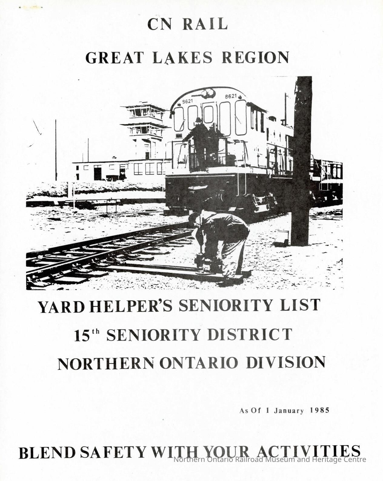 CN Rail, Great Lakes Region, Yard Helper's Seniority List, 15th Seniority District, Northern Ontario Division, as of 1 January 1985.Collection