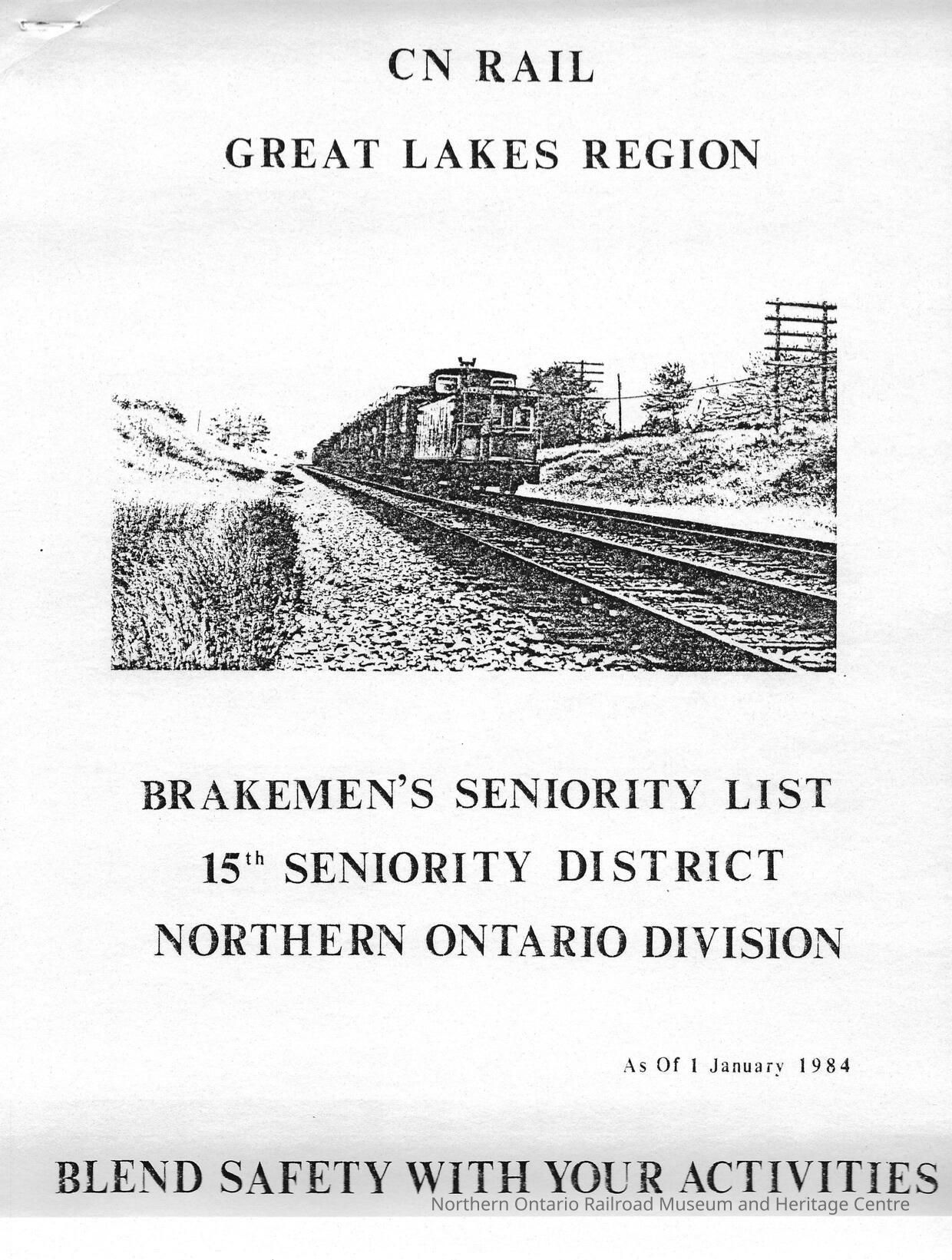 CN Rail, Great Lakes, Brakemen's Seniority List, 15th Seniority District, Northern Ontario Division, 1 January 1984.Collection