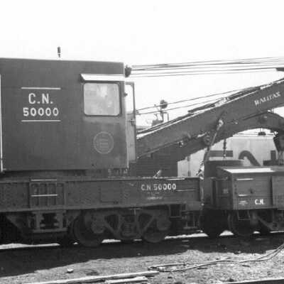Digital copy of a black and white photograph of Canadian National Railways 160 ton hoist, CN 50000.Collection