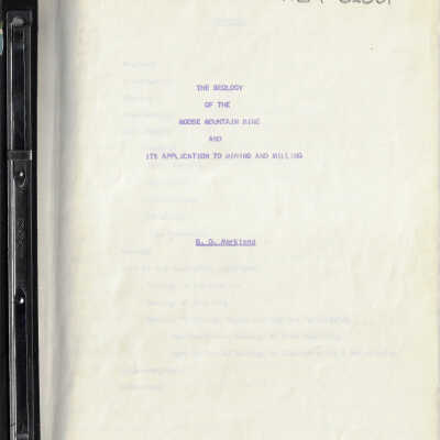 Book, report on the geology of the Moose Mountain Mine and the application to mining and milling. It is bound in a black binder.Creator