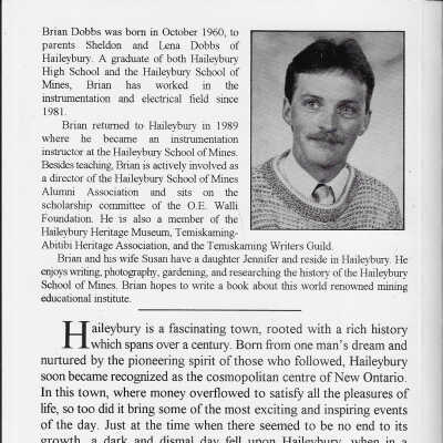 Book detailing the history of Haileybury Ontario. It discusses the rise and fall of the town and the circumstances that made this occur.Creator
