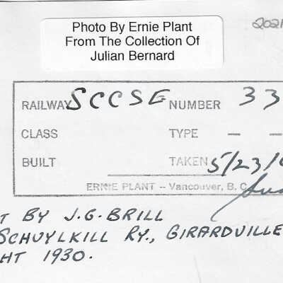 "Built by J.G. Brill Ex Schuylkill Ry., Girardville, PA. Bought 1930."Language