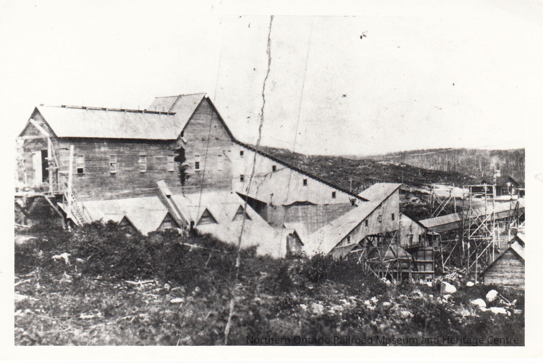 Black and White- Wooden structures cover mine buildings an conveyor belts at Moose Mountain.Collection