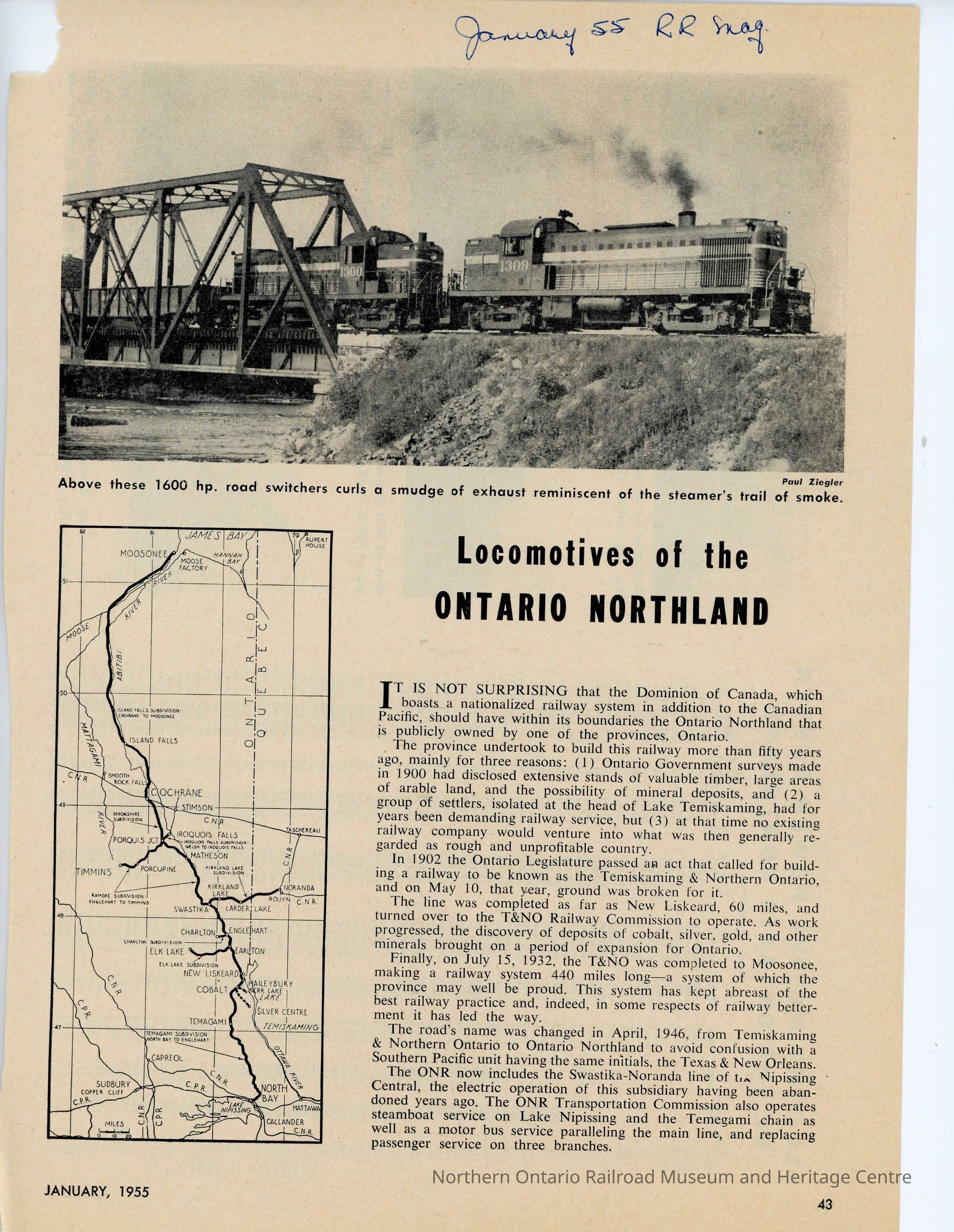 "Locomotives of the Ontario Northland" in Railroad Magazine, January 1955Entry/Object ID