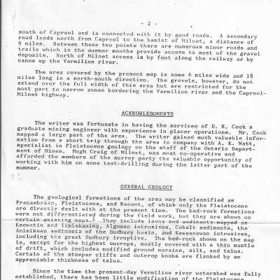 Ontario Department of Mines: The Pleistocene Geology of the Vermillion River System Near Capreol District of Sudbury, Ontario (with special reference to placer gold)Entry/Object ID