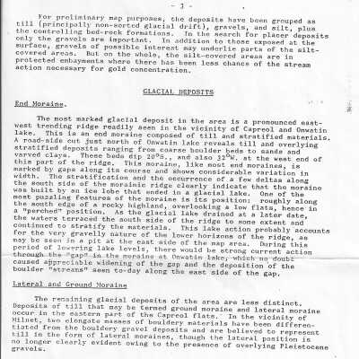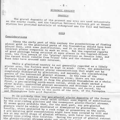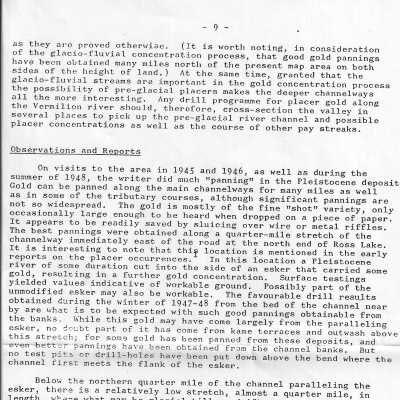 Article, essay written by V.K. Prest regarding the pleistocene deposits of gold, and other materials, dug up in the Vermillion river in August and September, 1948.Creator