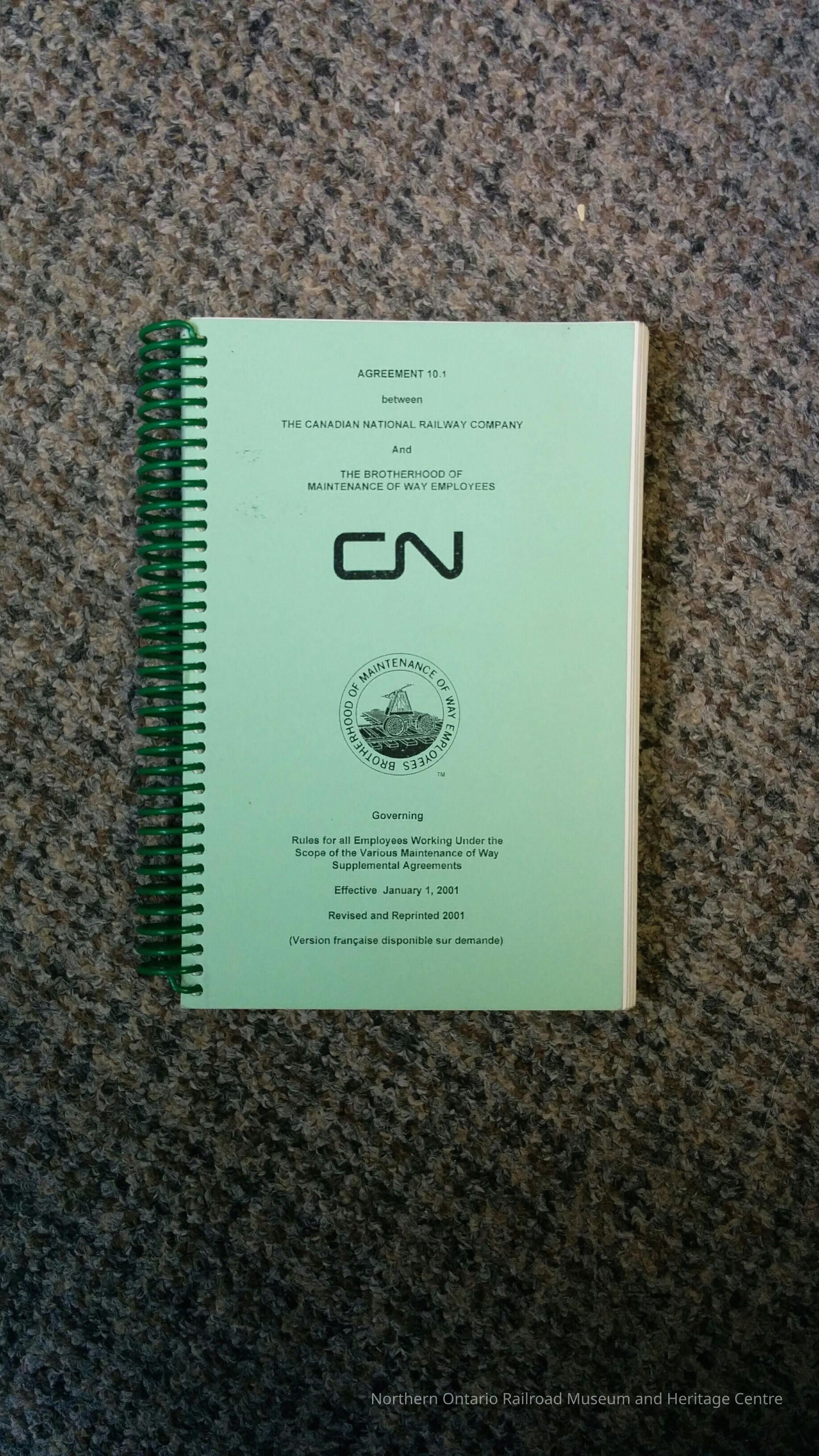 Agreement 10.1 between the Canadian National Railway Company and The Brotherhood of Maintenance of Way Employees January 1st 2001Collection