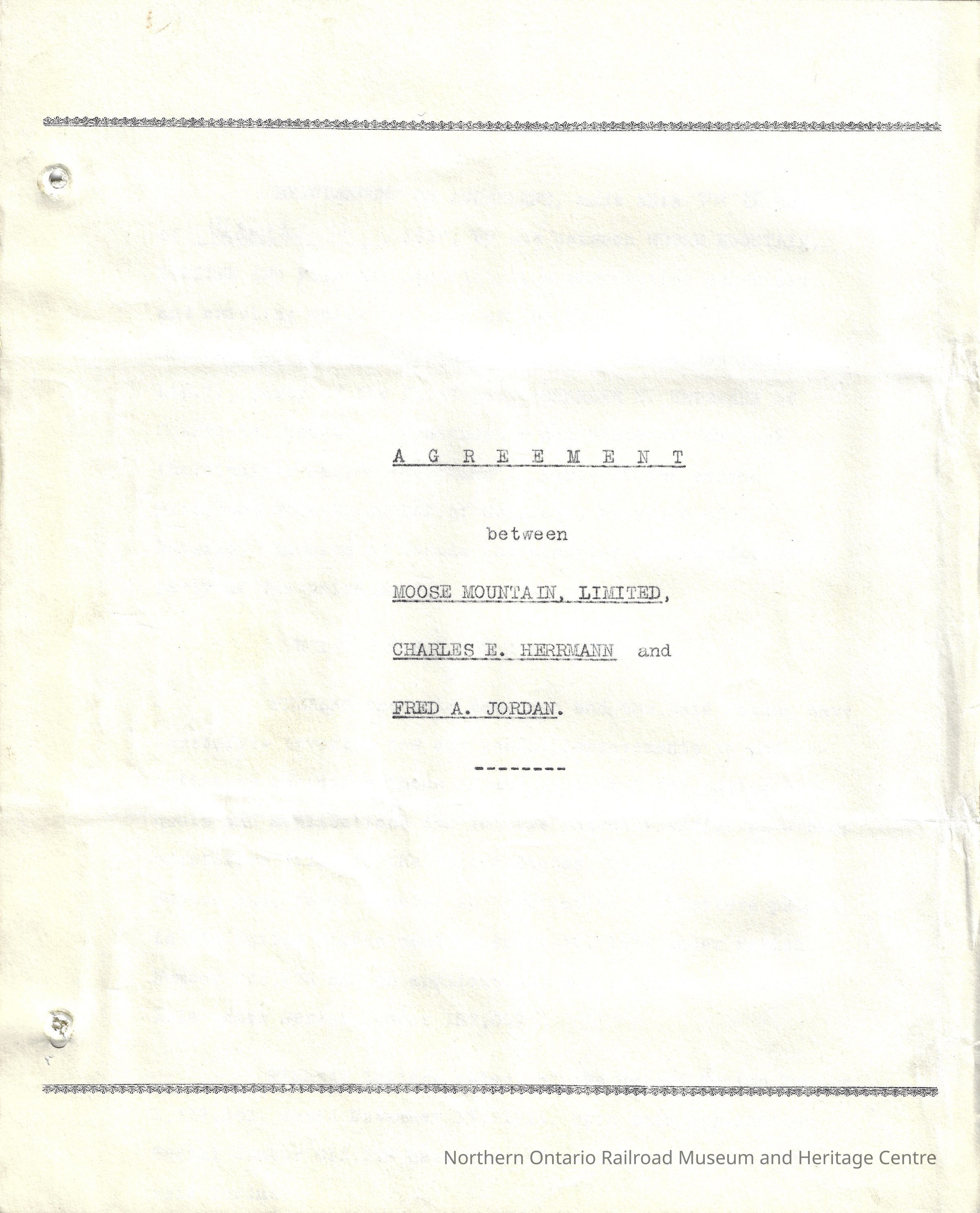 Agreement between Moose Mountain Limited and Charles E. Herrmann and Fred. A. Jordan. 24th March 1915Entry/Object ID