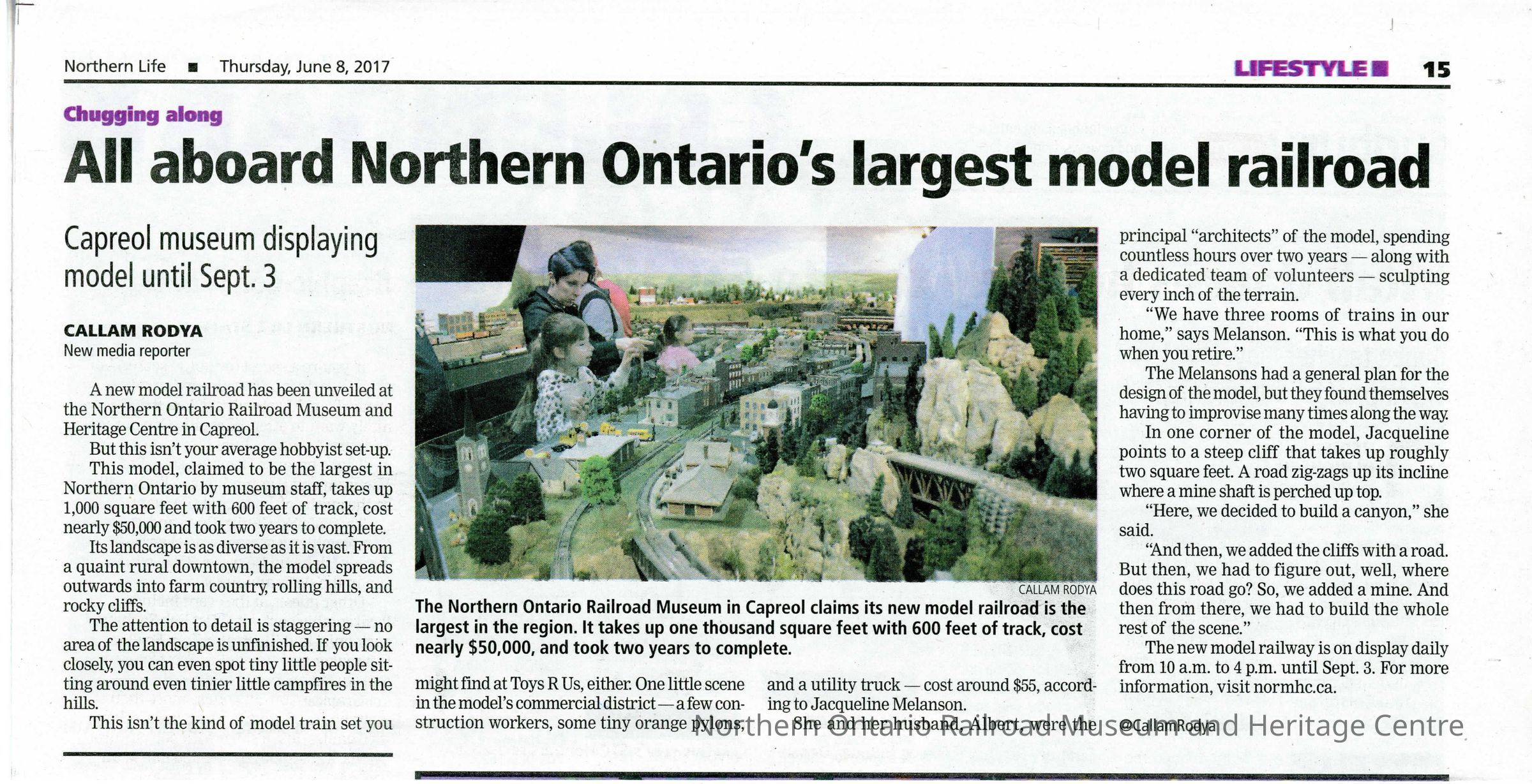 "All aboard Northern Ontario's largest model railroad" by Callum Rodya, Northern Life, June 8, 2017Description