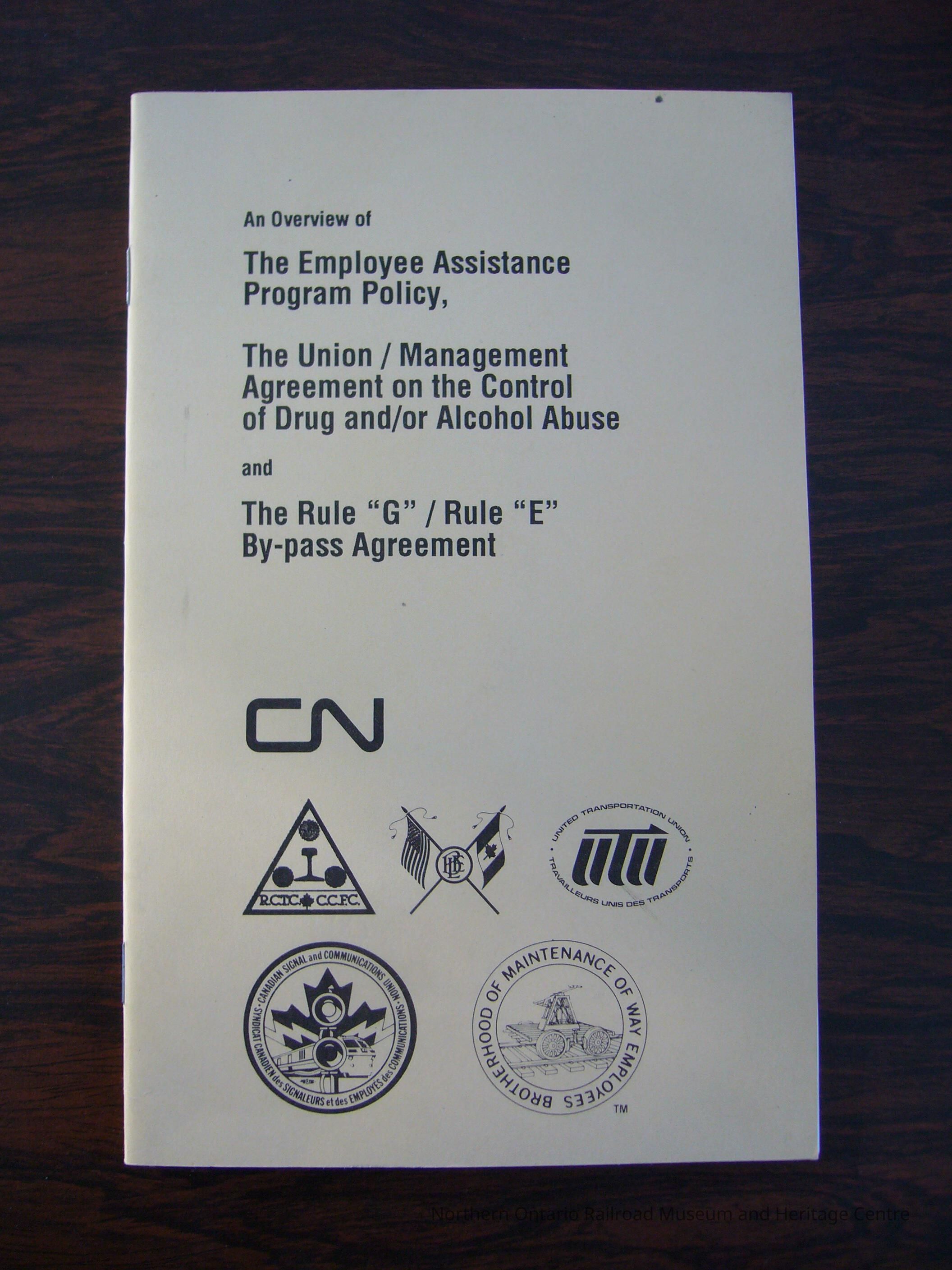 An Overview of The Employee Assistance Program Policy, The Union / Management Agreement on the Control of Drug and/or Alcohol Abuse and The Rule "G" / Rule "E" By-pass AgreementEntry/Object ID