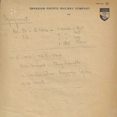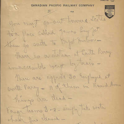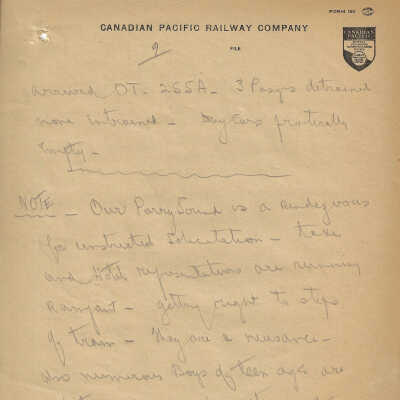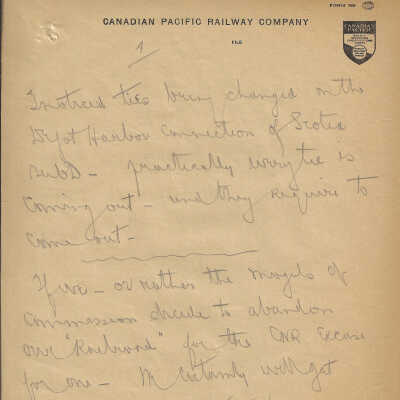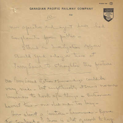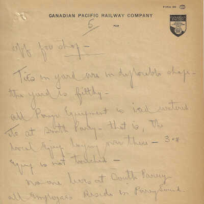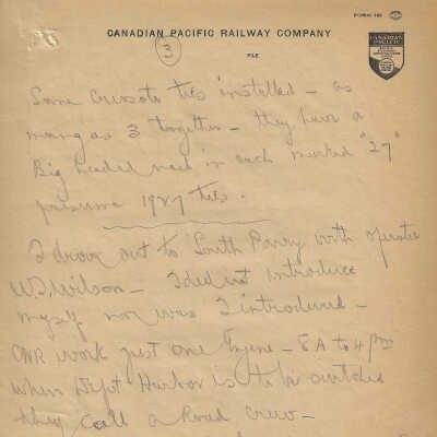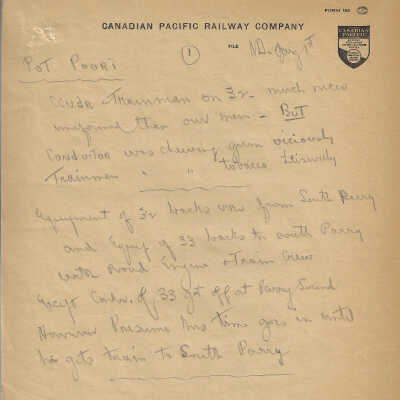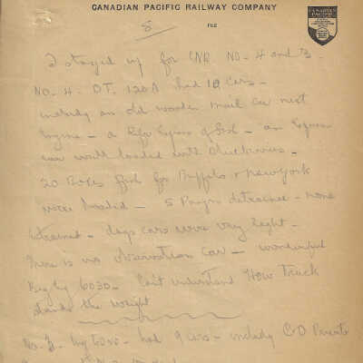 The notes are written on Canadian Pacific LetterheadArchive Items Details