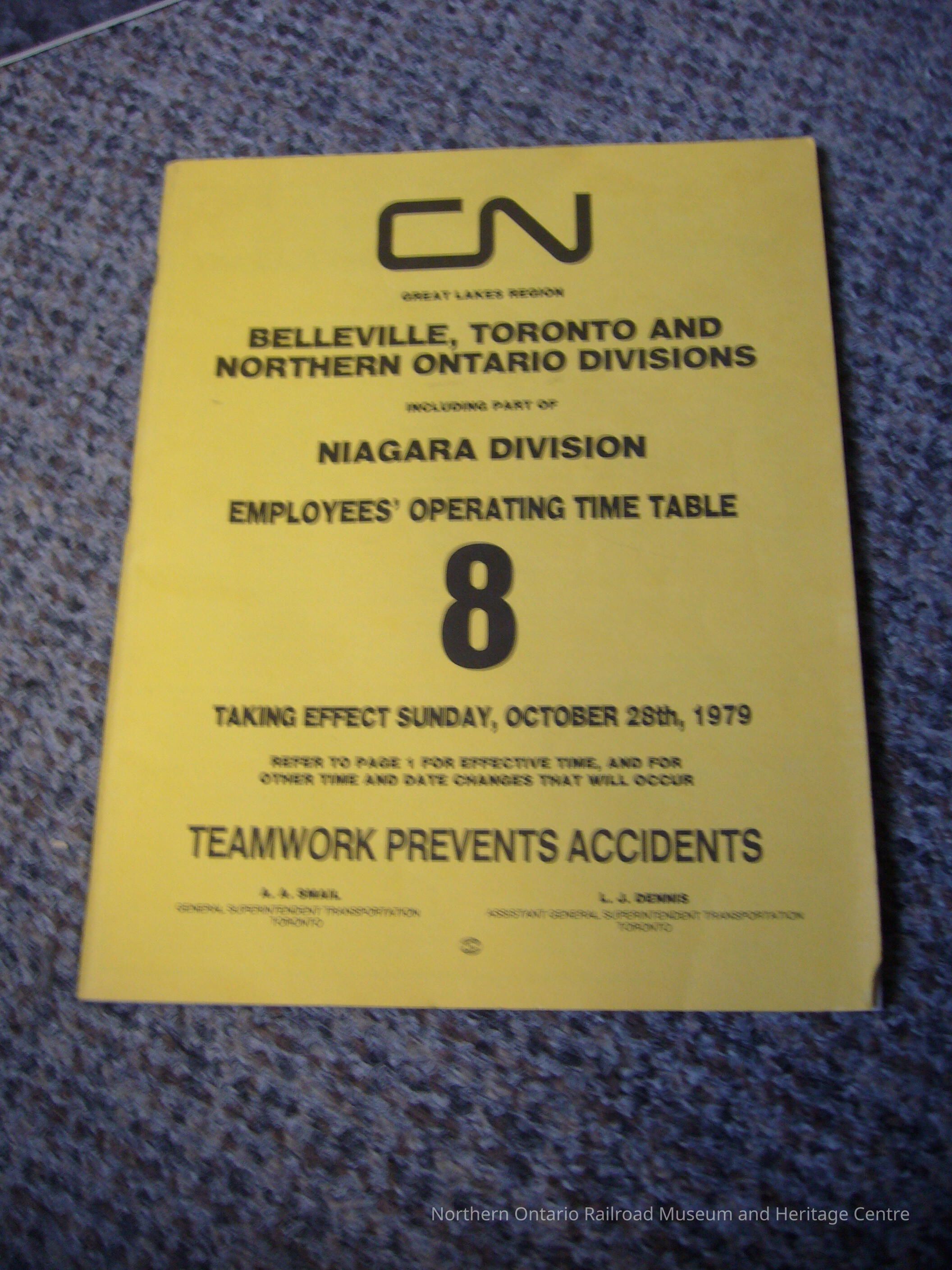 Belleville, Toronto and Northern Ontario Divisions Employees Operating Timetable 8 October 28th 1979Entry/Object ID