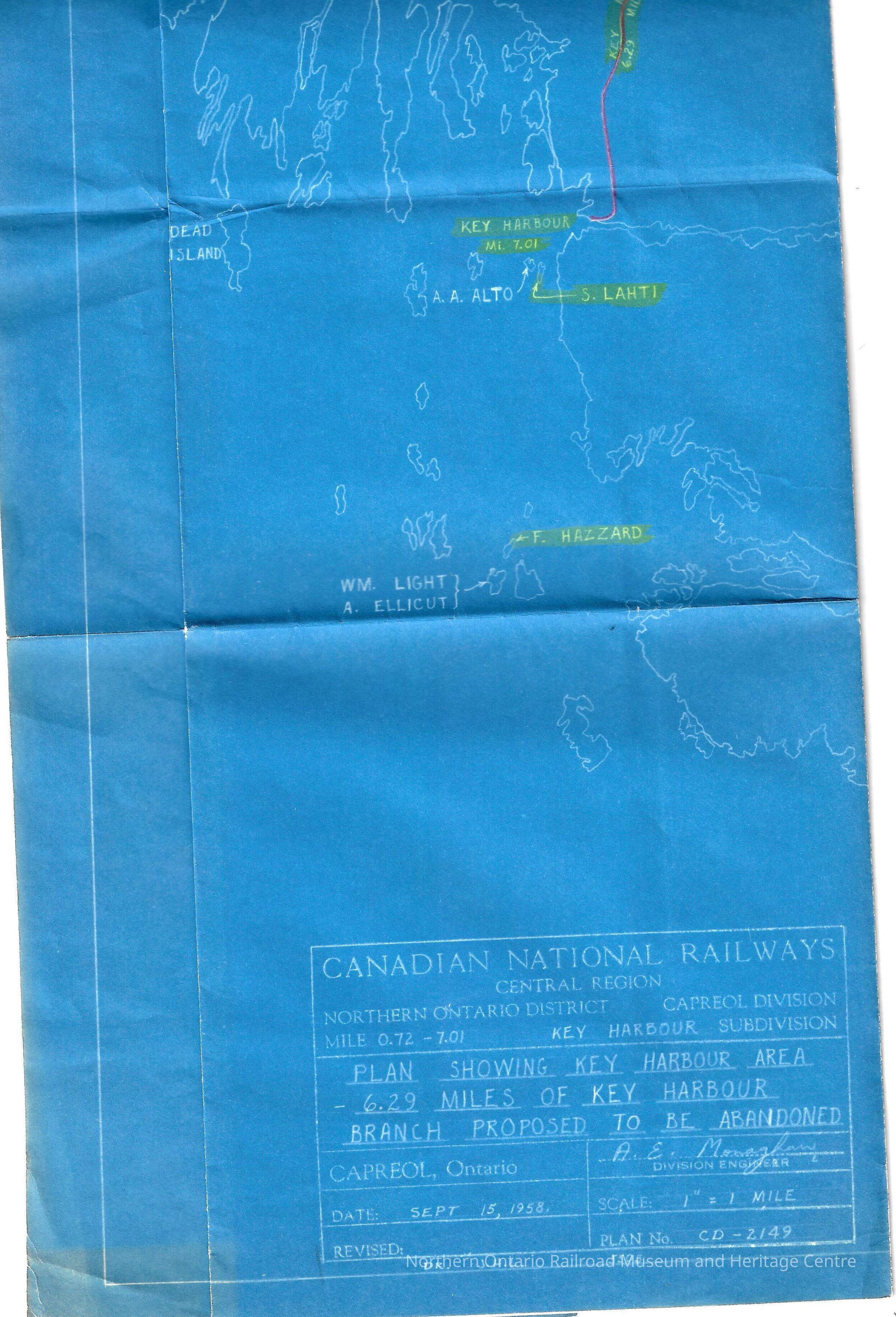 plan showing Key Harbour area - 6.29 miles key Harbour Branch proposed to be abandonedCollection