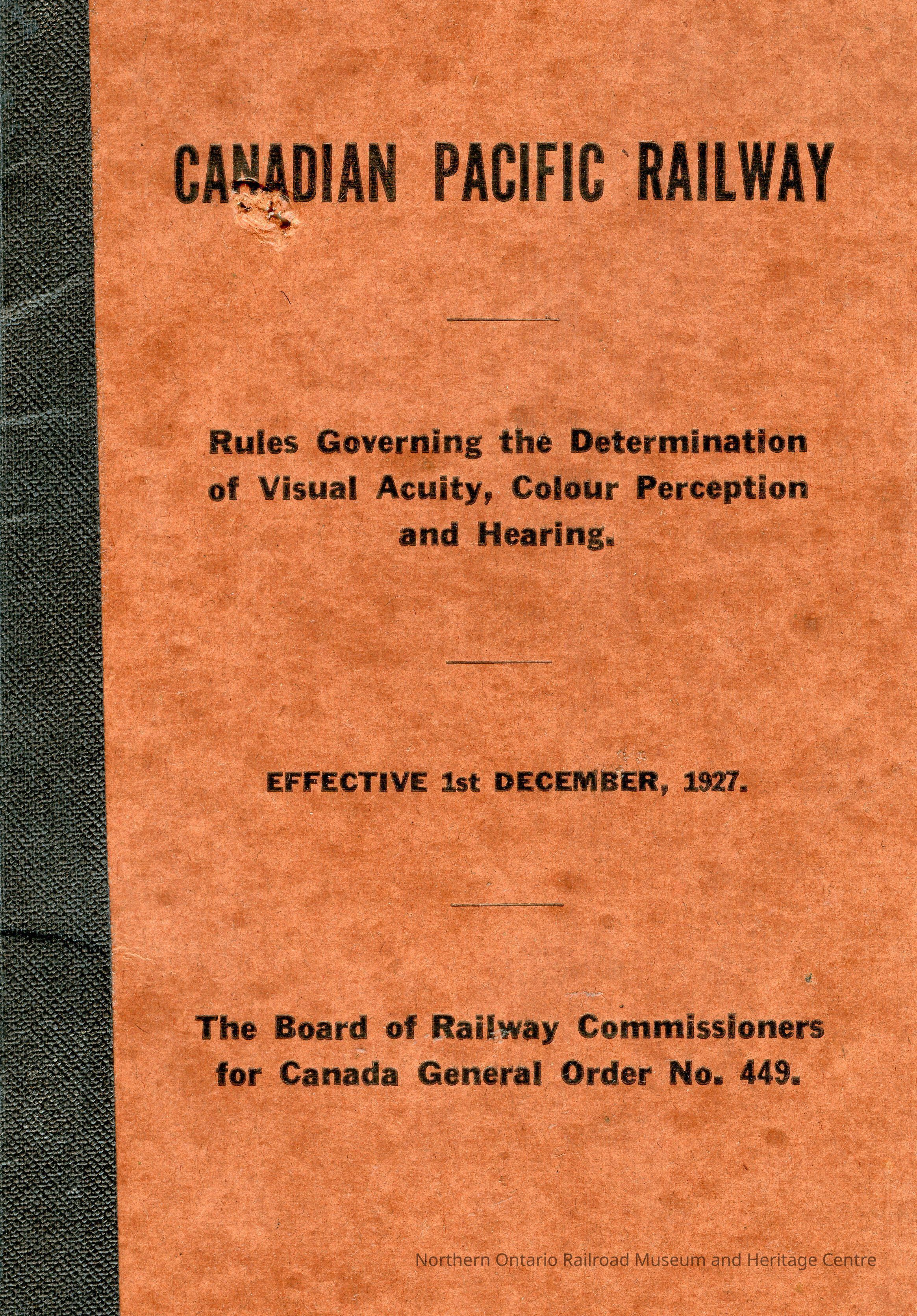 Book, Canadian Pacific Railway, Rules Governing the Determination of Visual Acuity, Colour Perception and Hearing, December 1st 1927.Collection