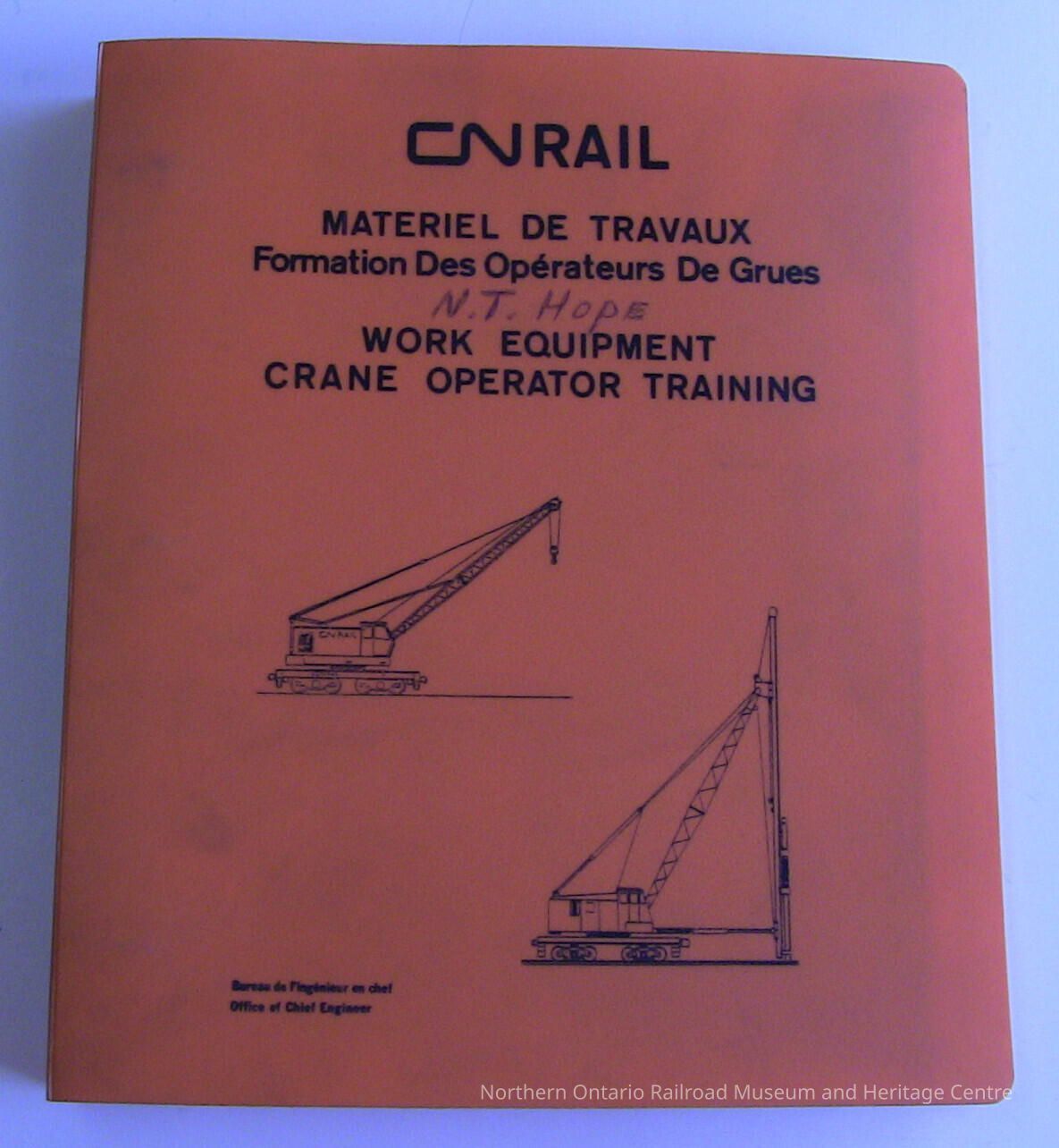 Book- A training manual for CN employees to learn the proper operation and maintenance of a CN Rail crane. Originally owned by N.T. Hope.Collection