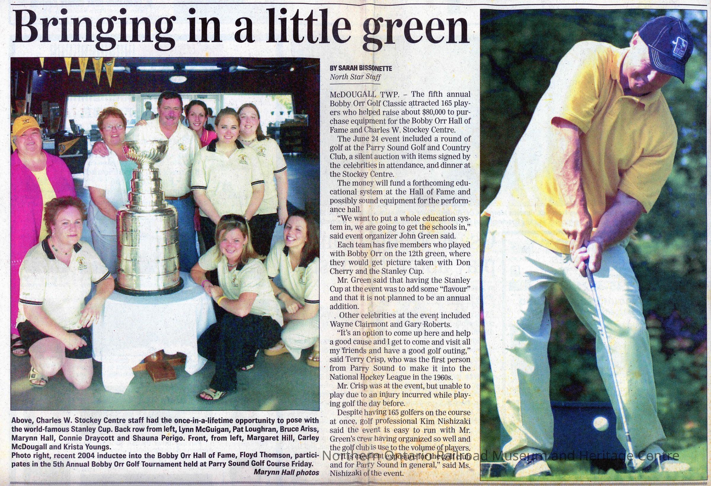"Bringing a little green" Article/Photo in Parry Sound North Star, Wednesday June 29, 2005. Featurs picture of Floyd Thompson after induction into the Bobby Orr Hall of Fame.Collection