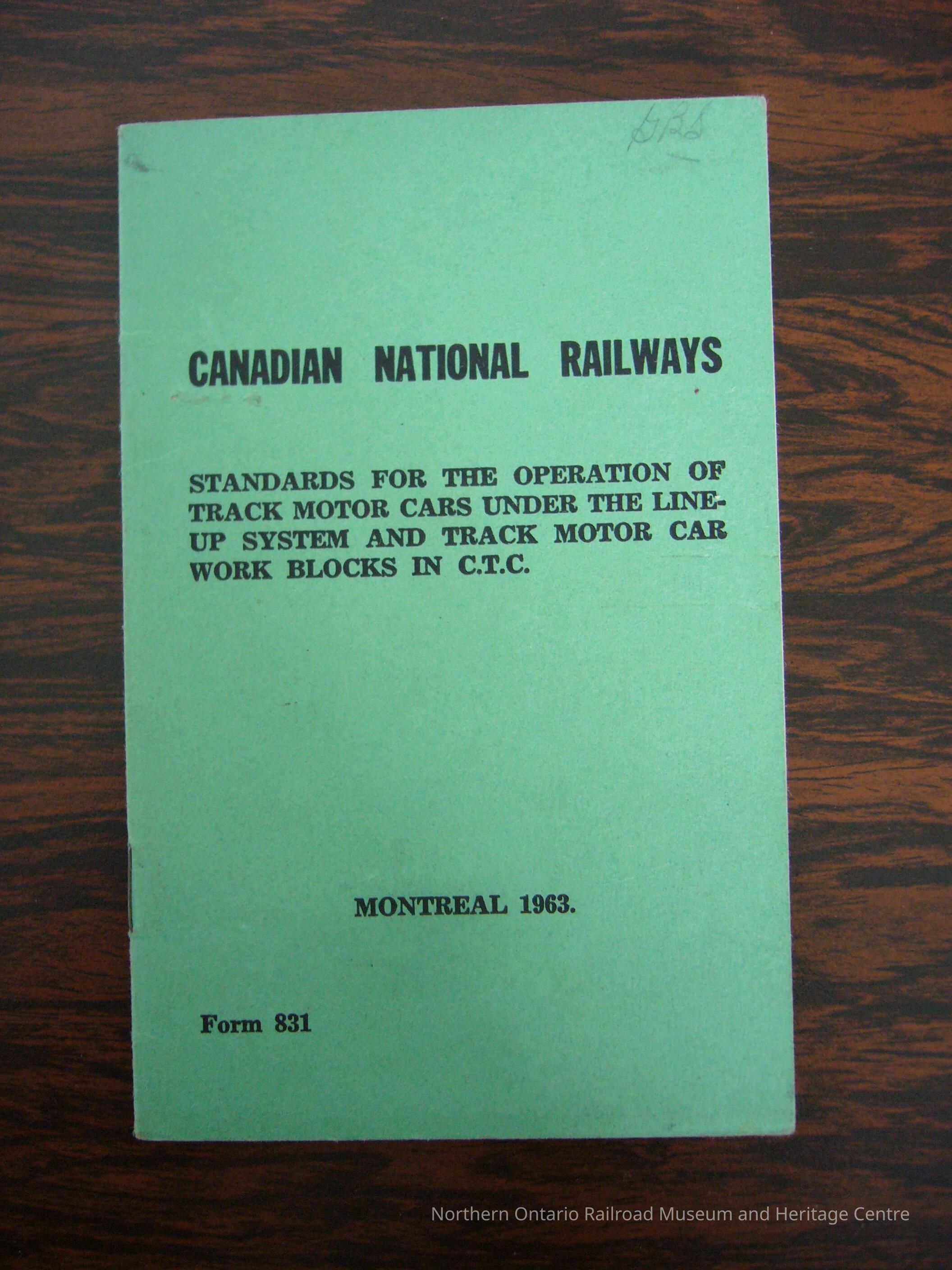 Canadian National Railways Standards for the Operation of Track Motor Cars Under the Line-Up System and Track Motor Car Work Blocks in C.T.C. Montreal 1963.Collection