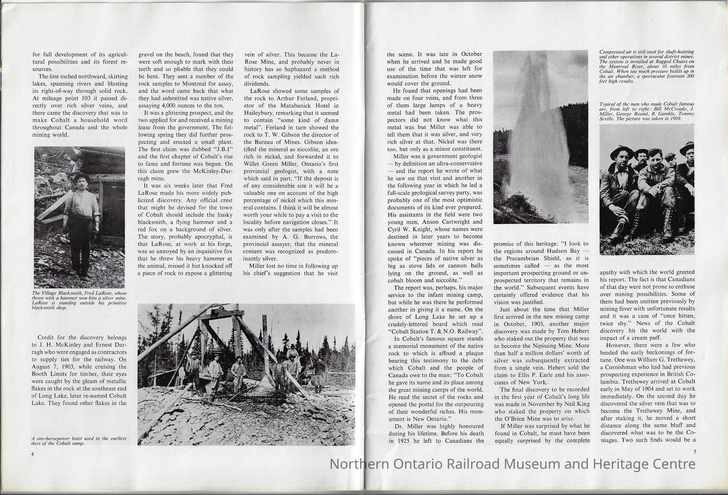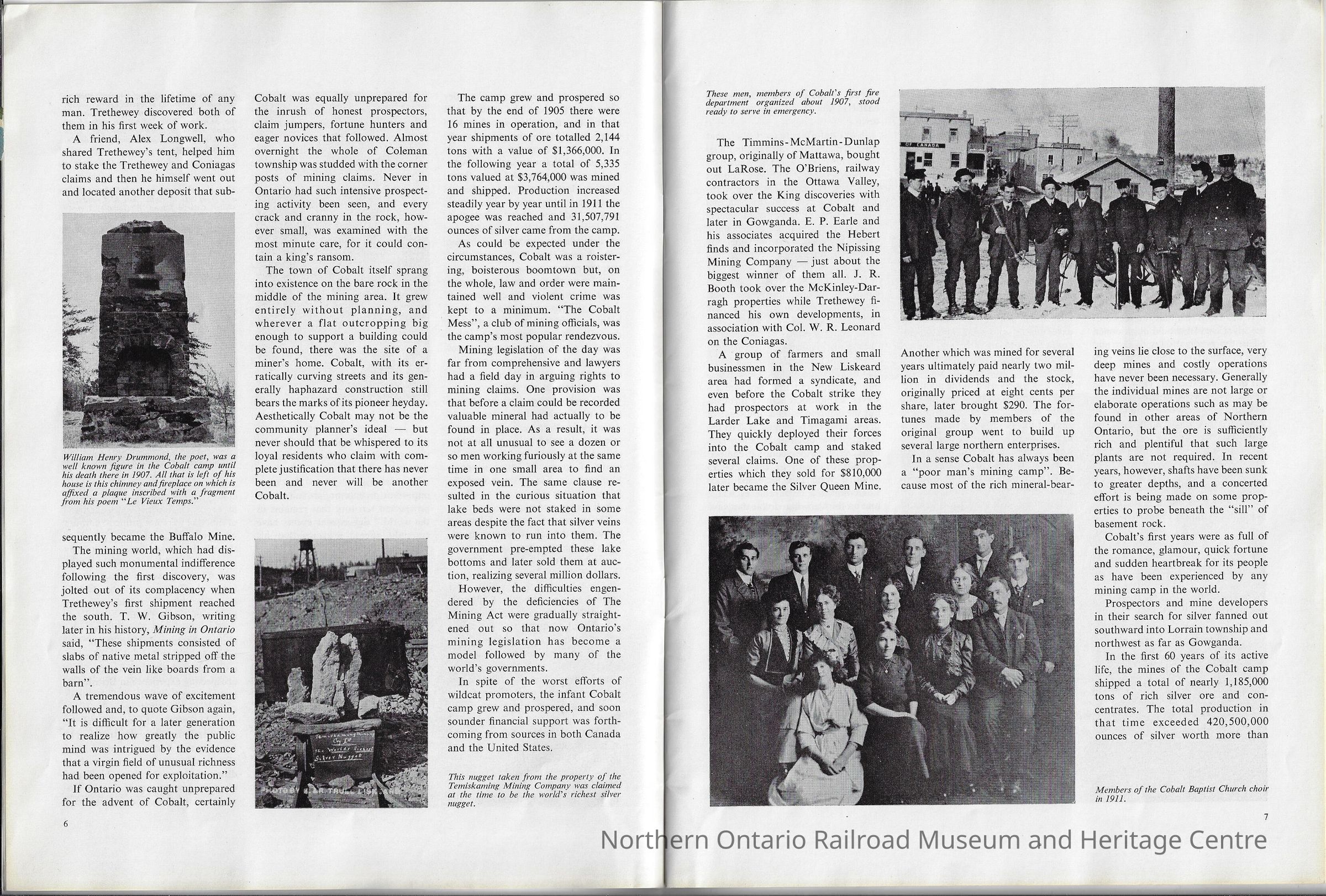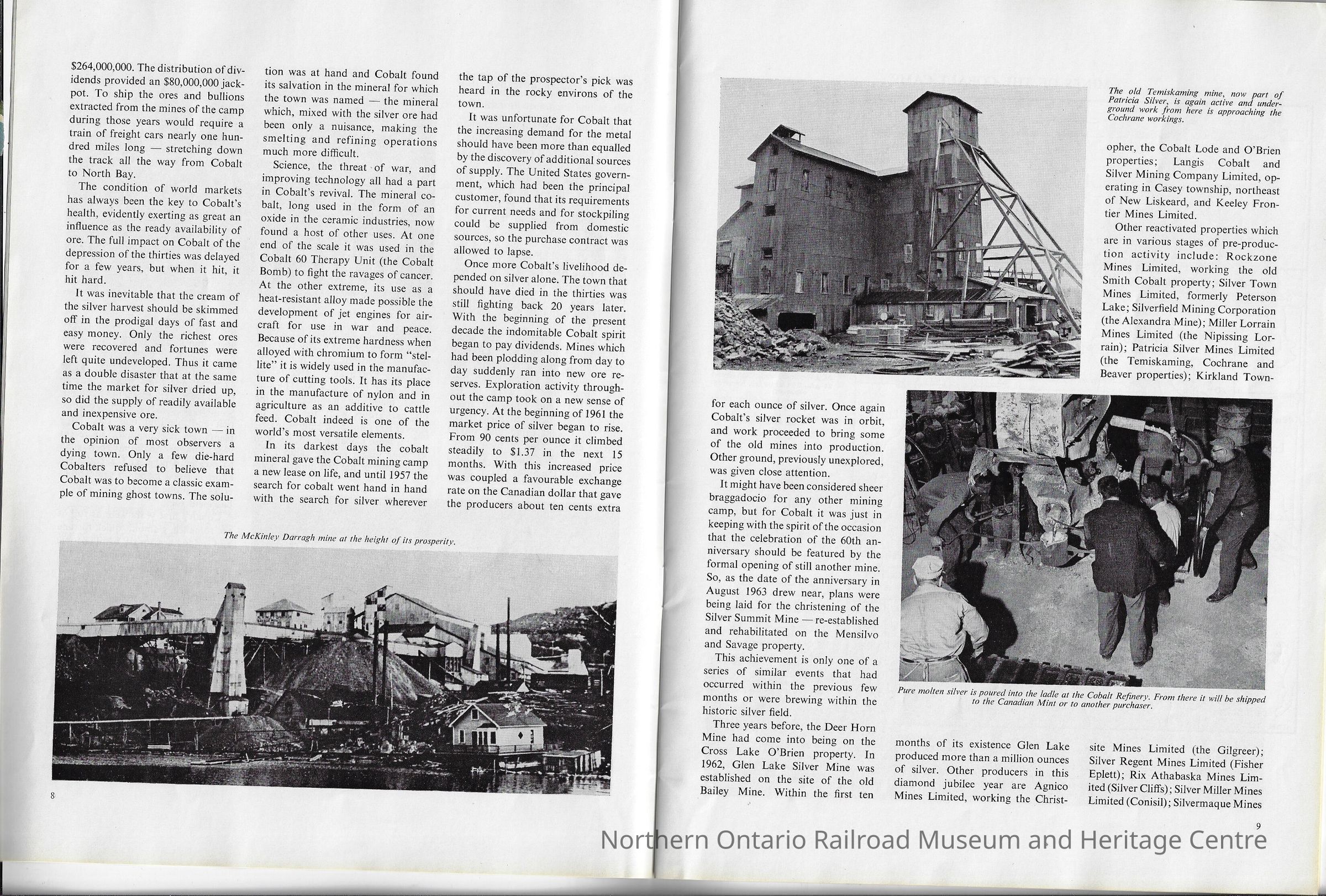 - Discusses mining history in Cobalt (see images)