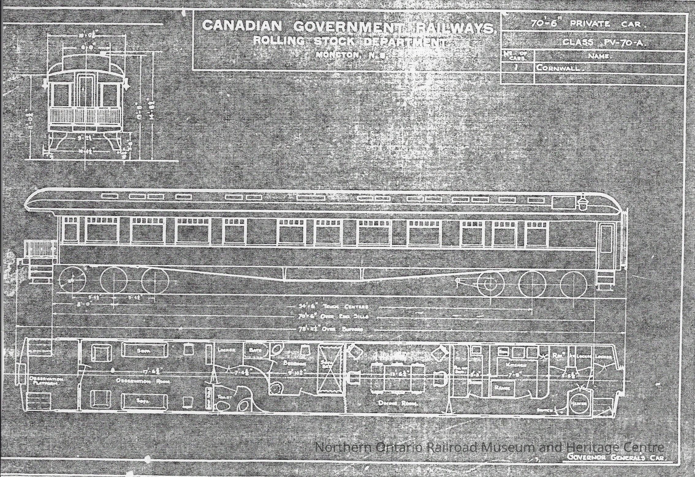 Copy of the original document, copy of the original blueprints for the Canadian Government Railway's private car.