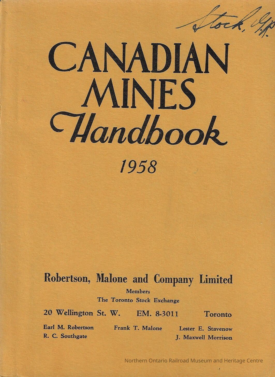 Book, handbook published by the Northern Miner Press discussing all Canadian Mines as of 1958Context